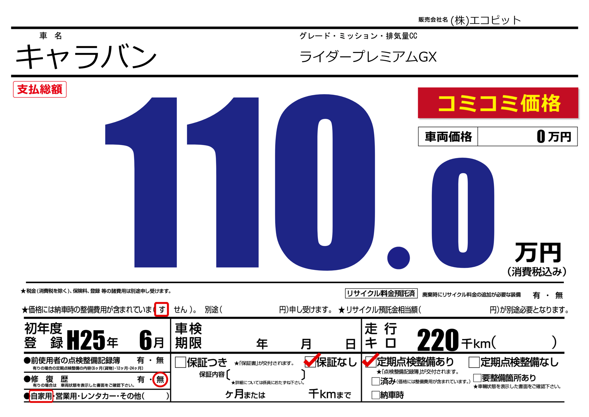 | 定期点検整備 | 定期点検整備あり | ||
