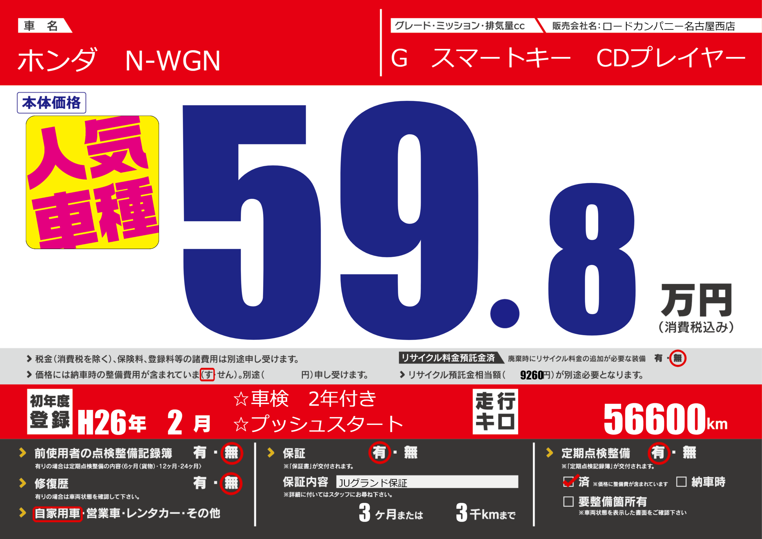| 定期点検整備 | 定期点検整備あり 定期点検整備済み | ||