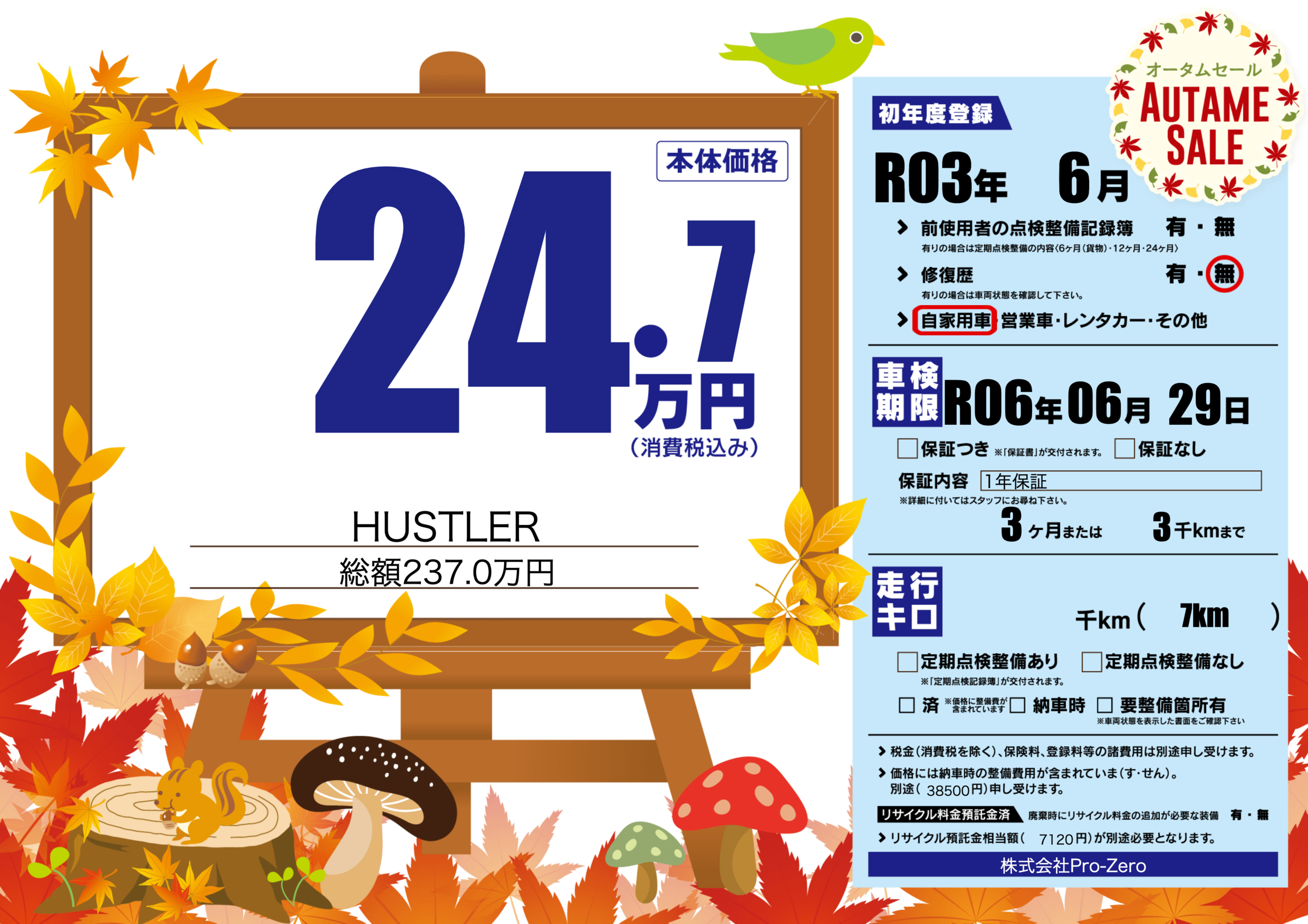 | 車名 | HUSTLER | グレード ミッション 排気量 |