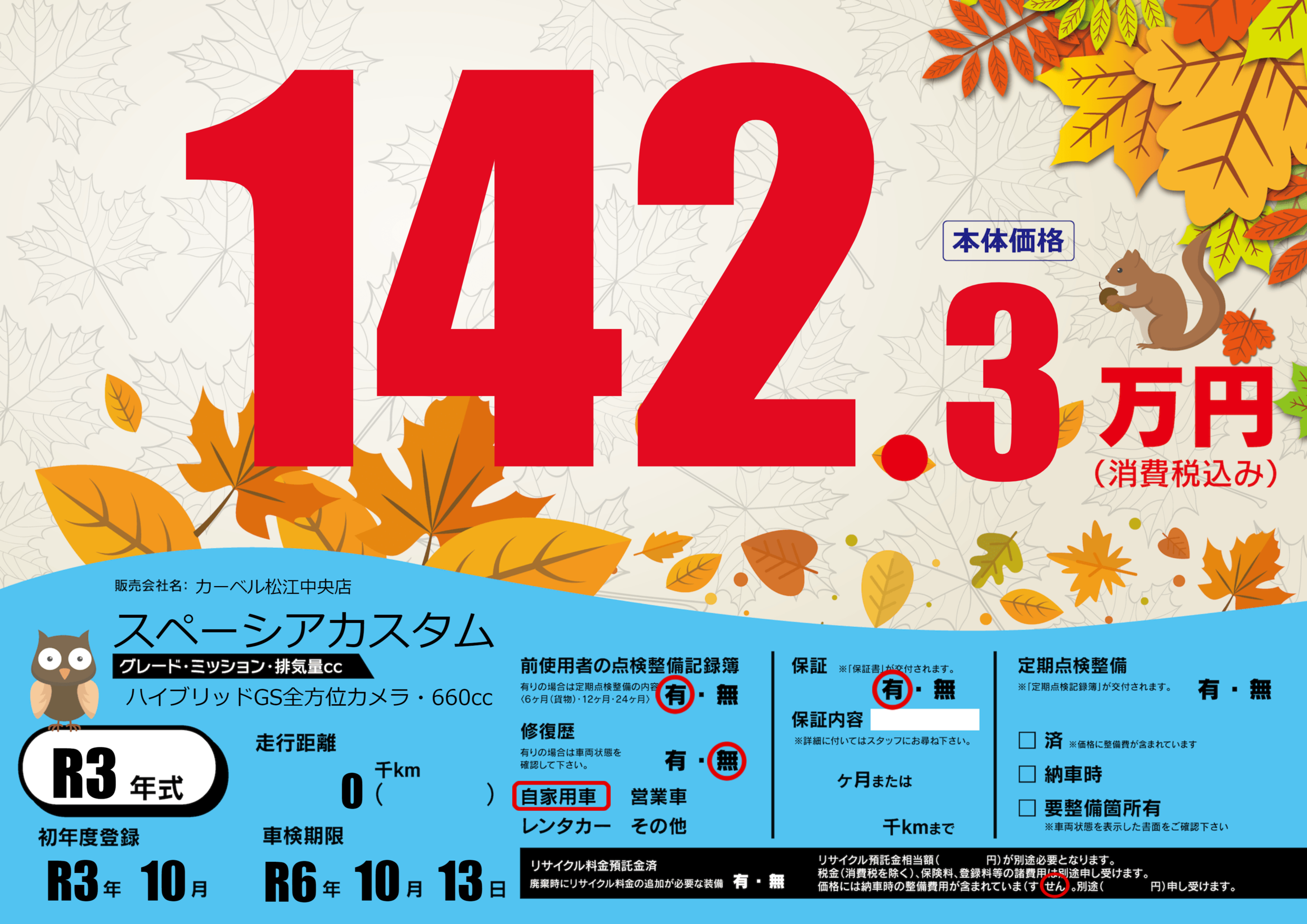 | 走行キロ | - | 初年度登録 | R3年10月 |