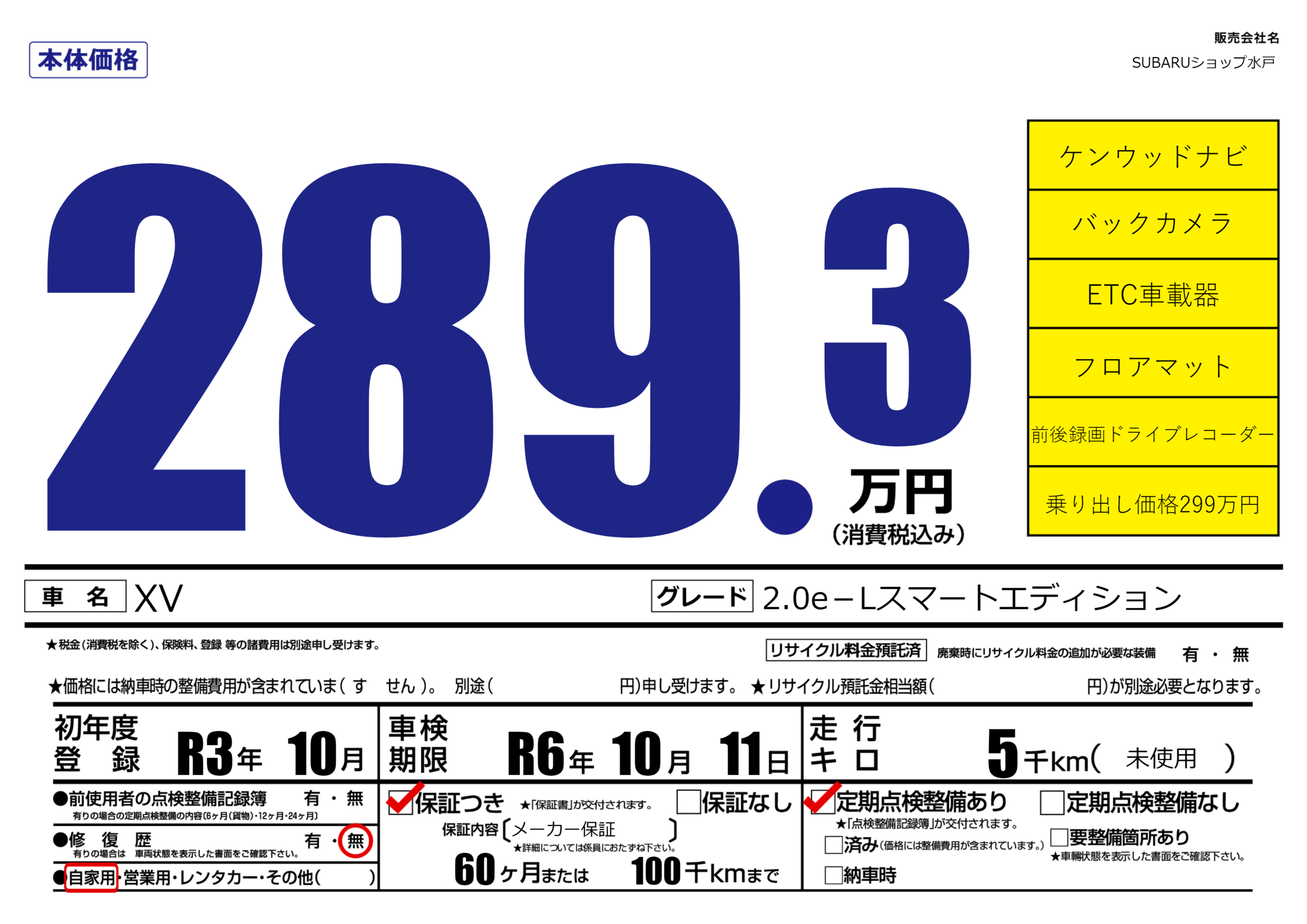 なし | 車検制限 | R6年10月11月 |