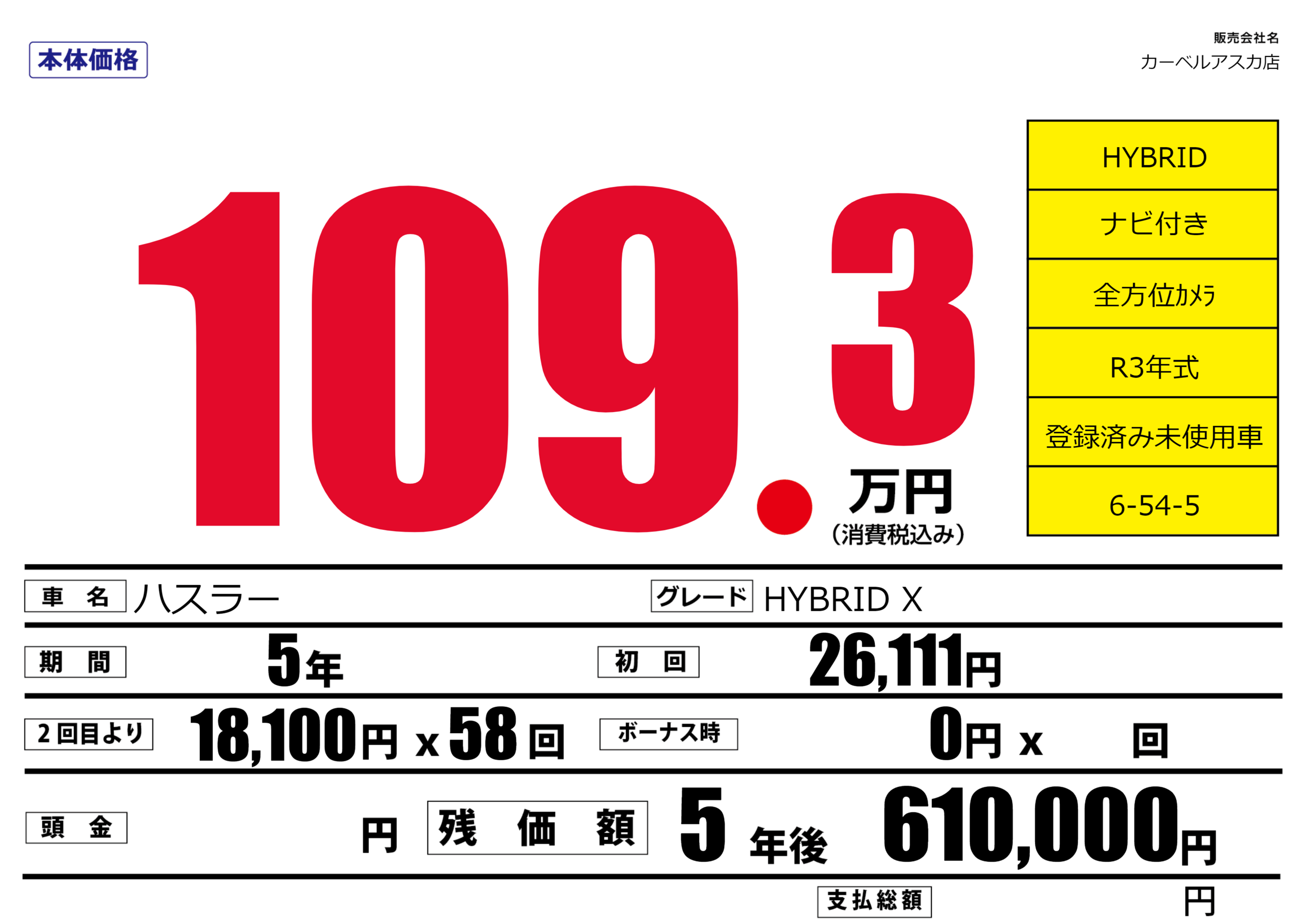 | 車名 | ハスラー | グレード ミッション 排気量 |