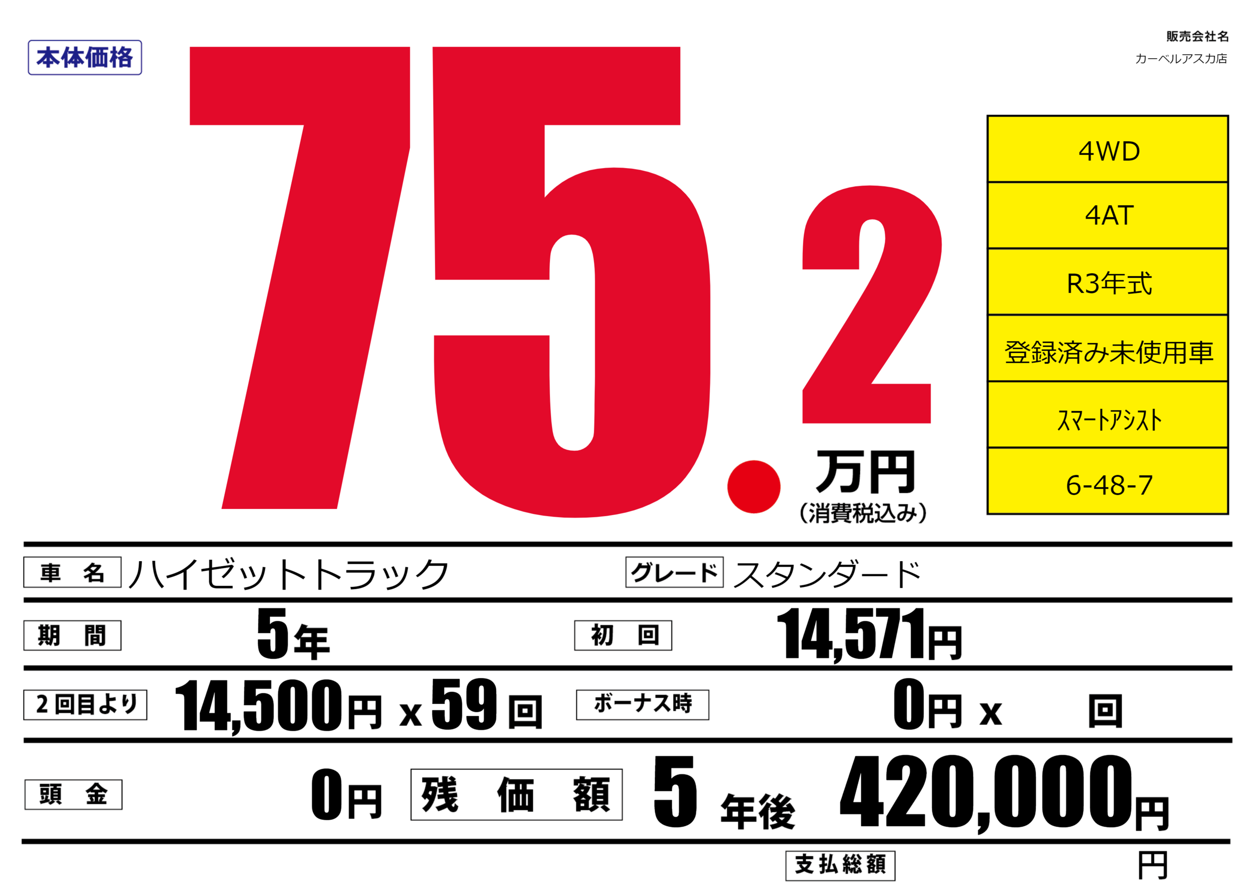 | 車名 | ハイゼットトラック | グレード ミッション 排気量 |