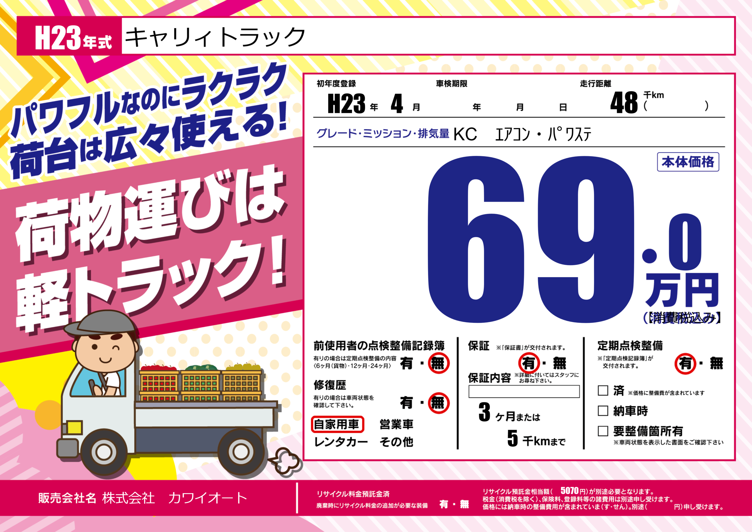 | 走行キロ | 4.8万km | 初年度登録 | H23年4月 |