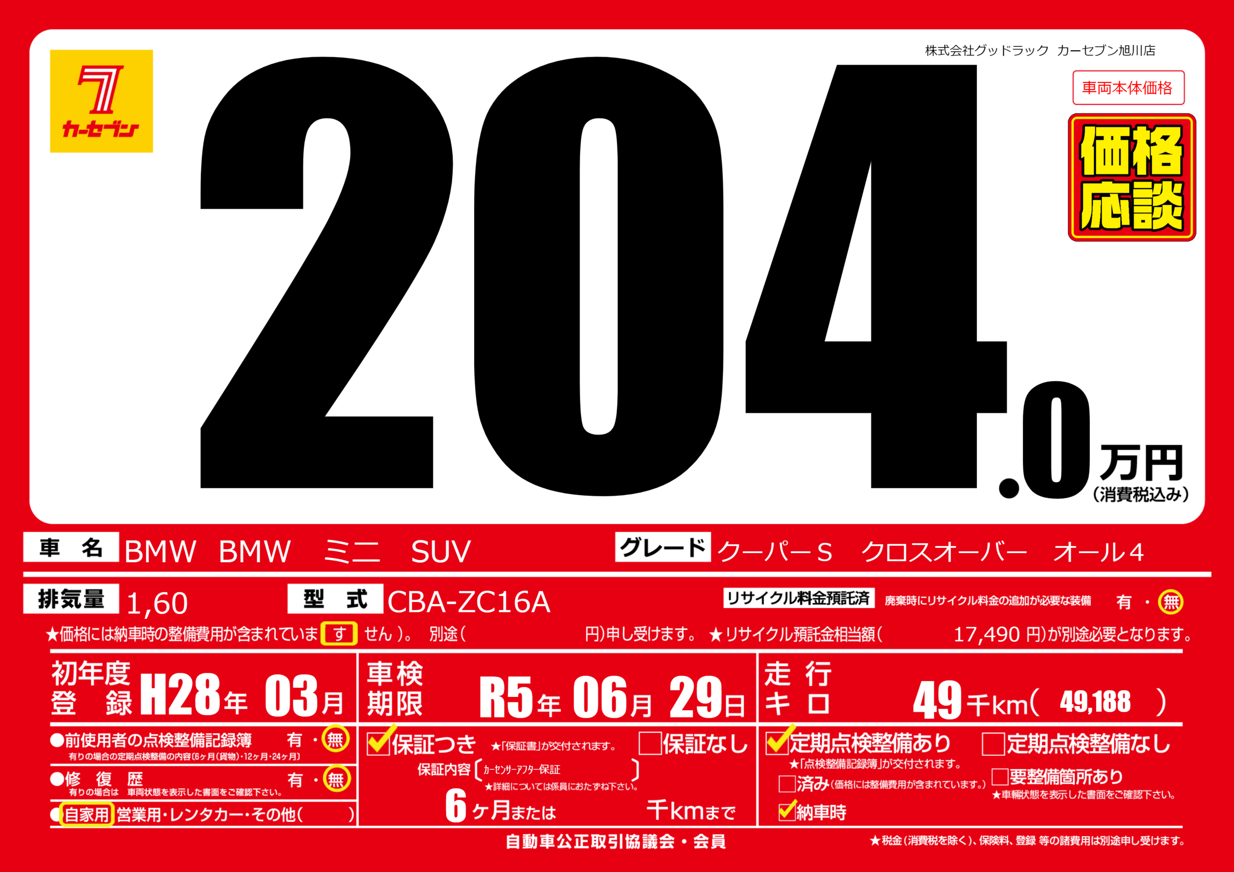 あり | 車検制限 | R5年06月29月 |