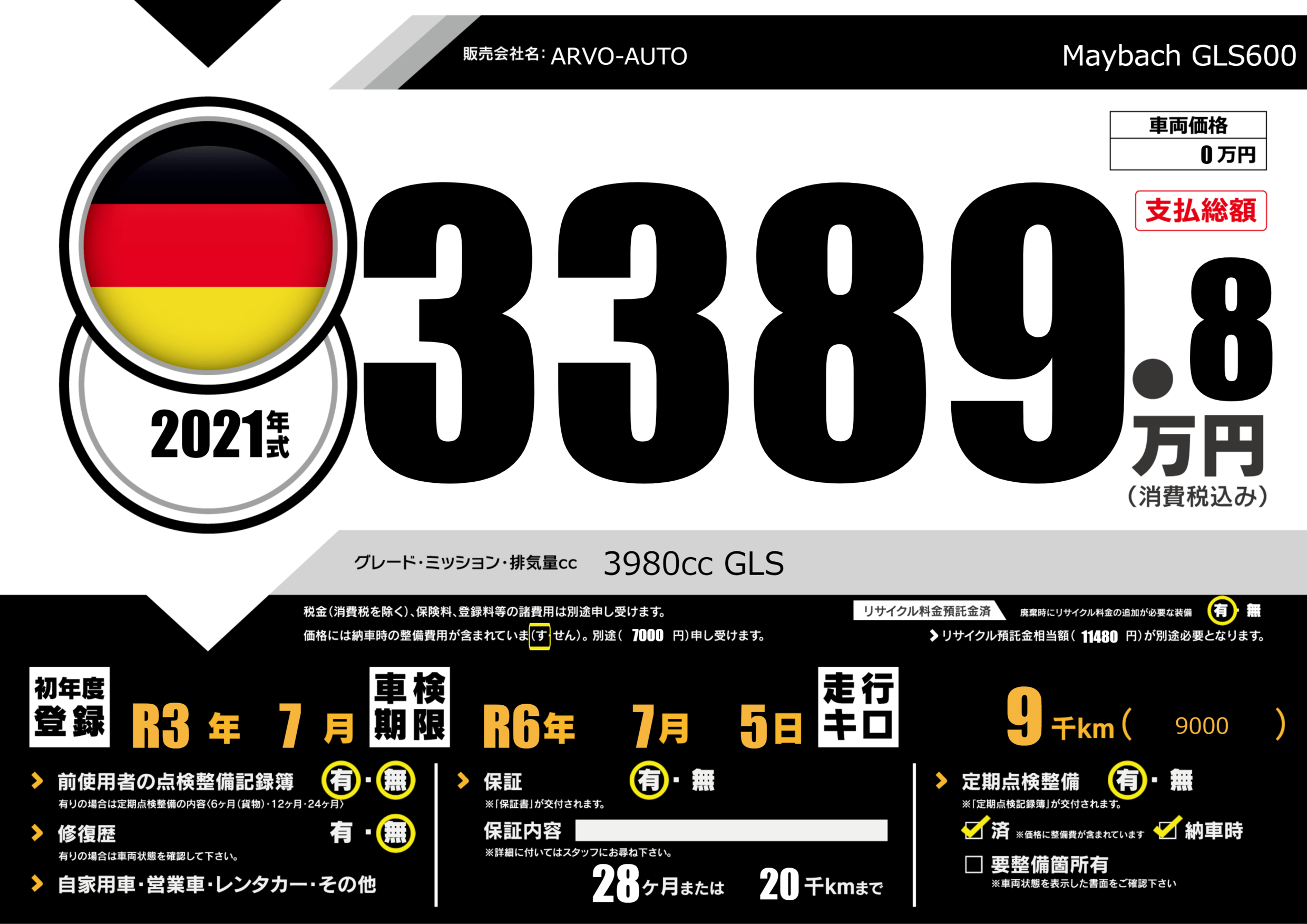 | 車名 | Maybach GLS600 | グレード ミッション 排気量 |