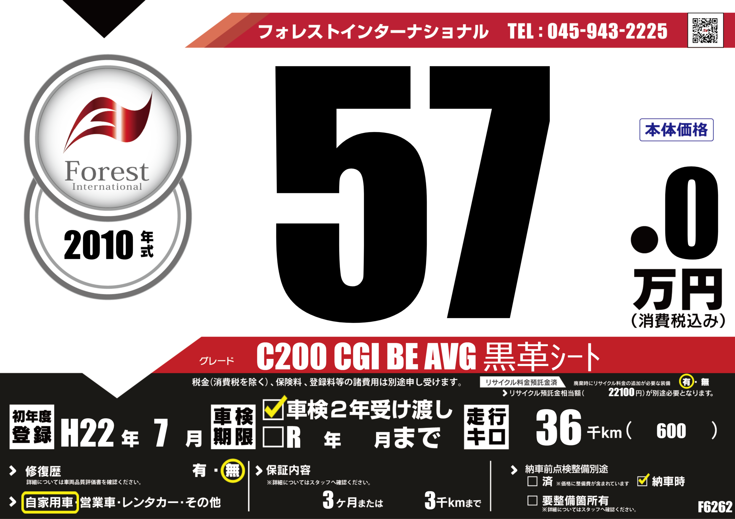 | 走行キロ | 3.6万km | 初年度登録 | H22年7月 |