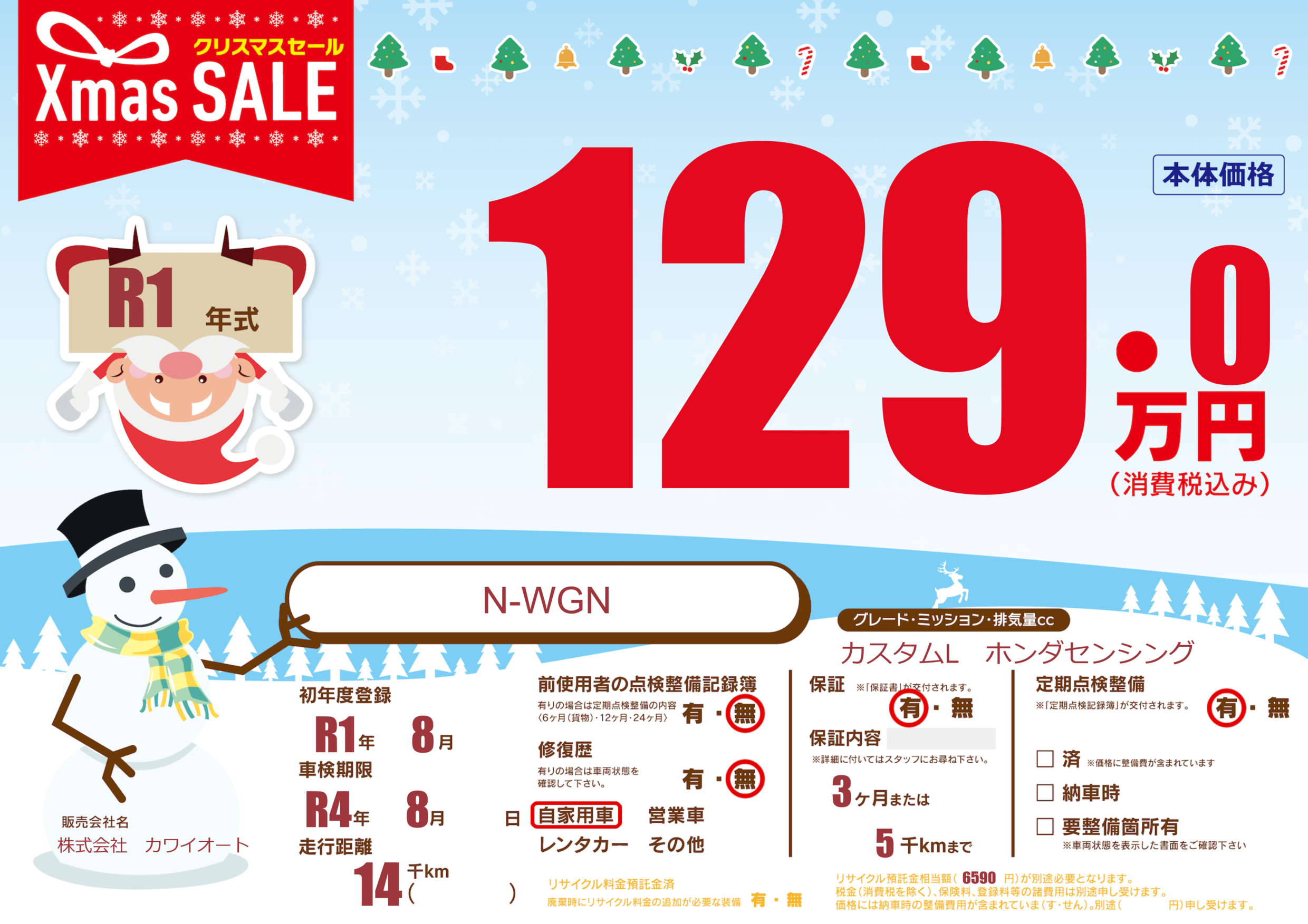 | 車名 | N-WGN | グレード ミッション 排気量 |