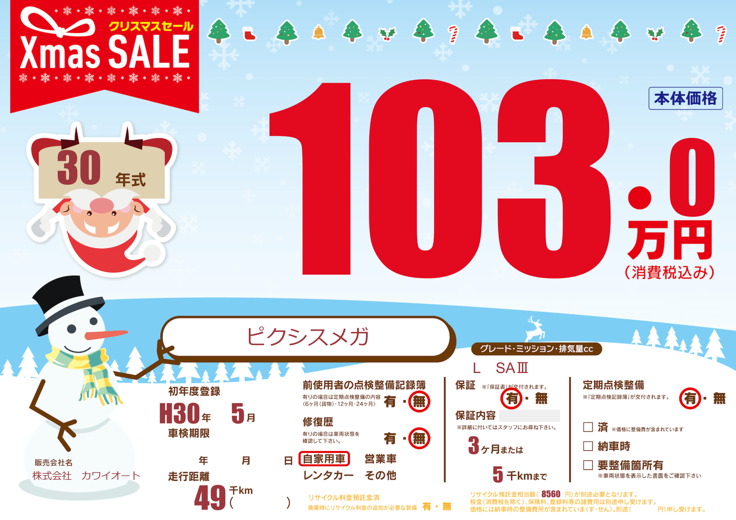 保証付き 保証内容(---) 3ヶ月または(5)千kmまで |