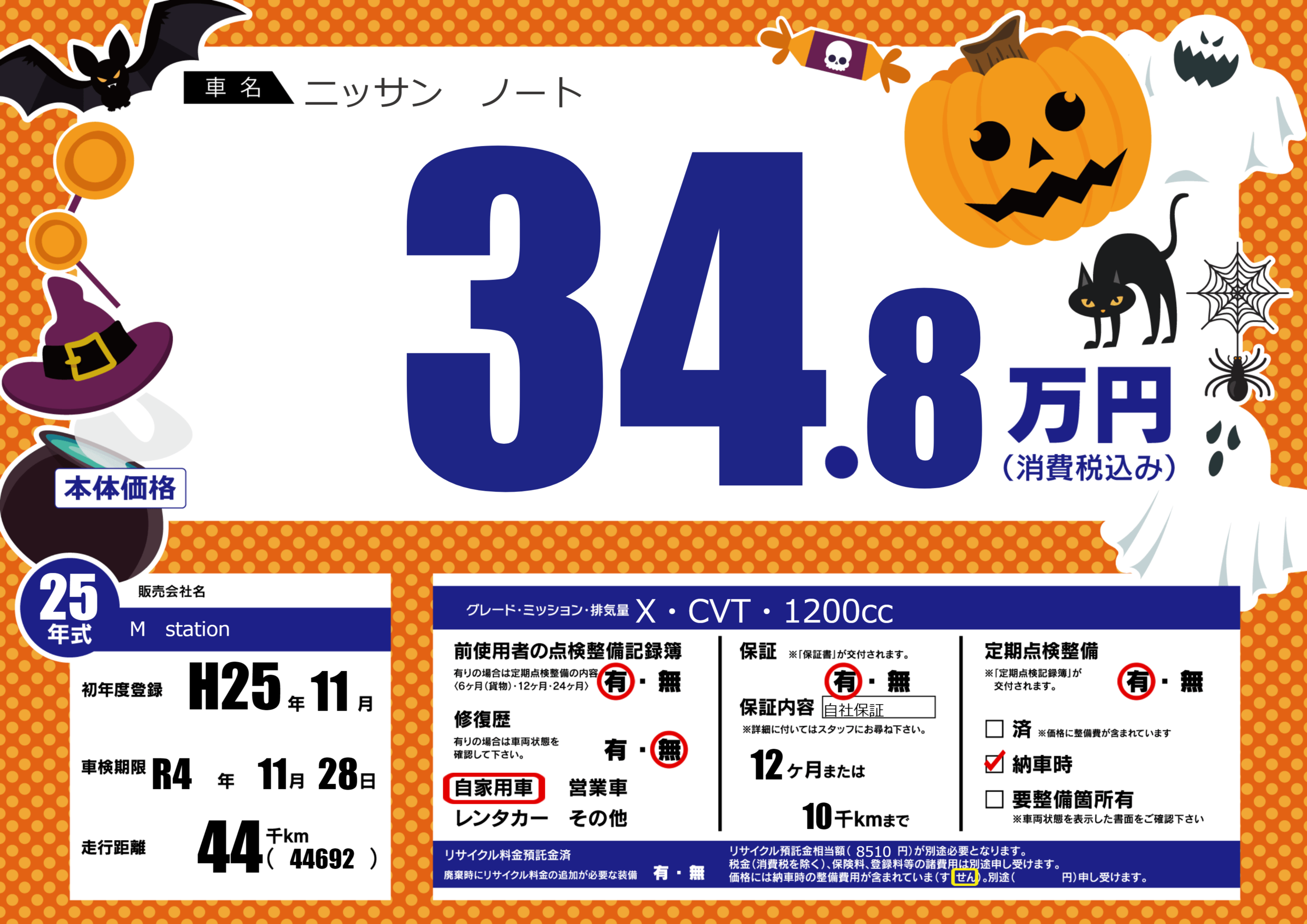 | 走行キロ | 4.4万km | 初年度登録 | H25年11月 |