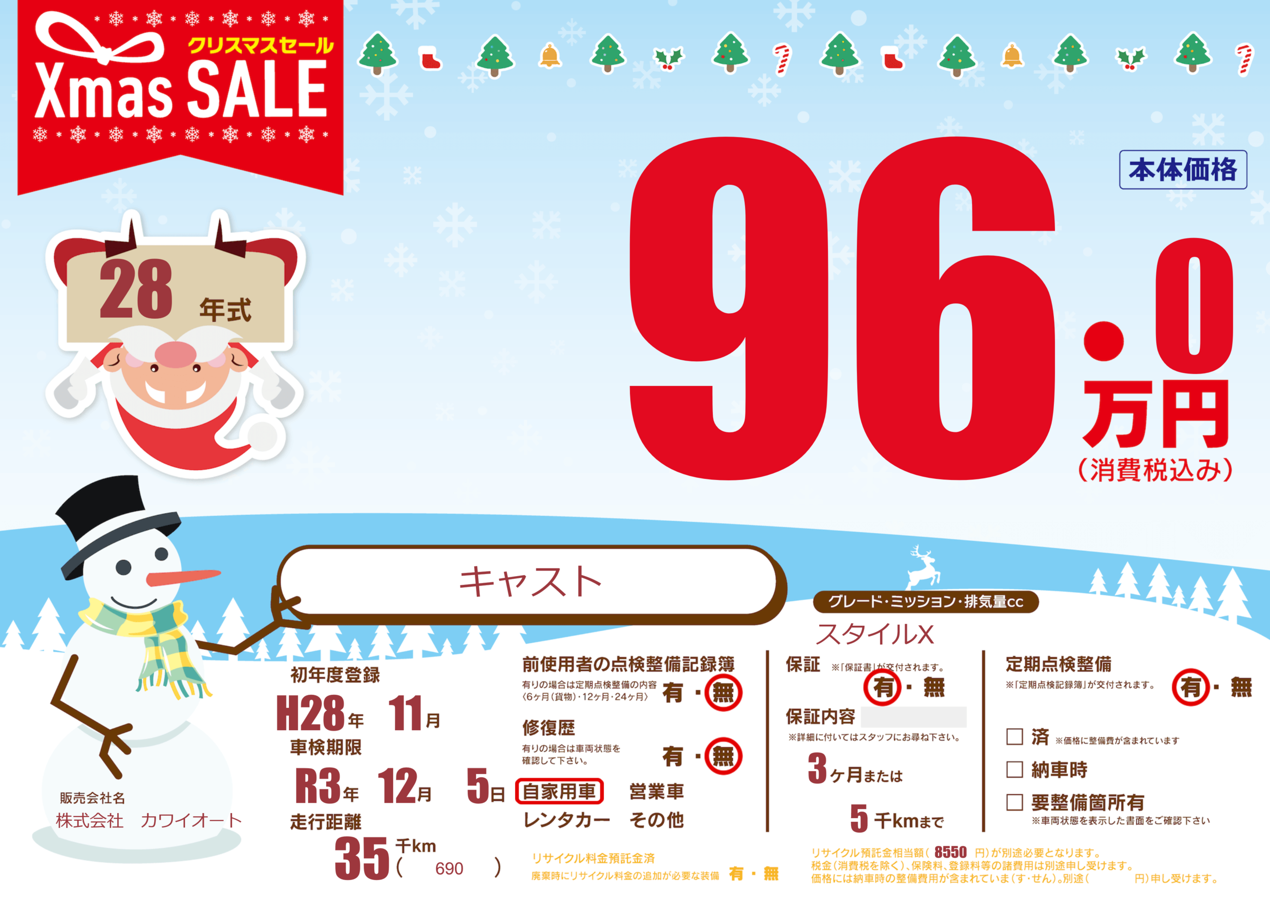 保証付き 保証内容(---) 3ヶ月または(5)千kmまで |