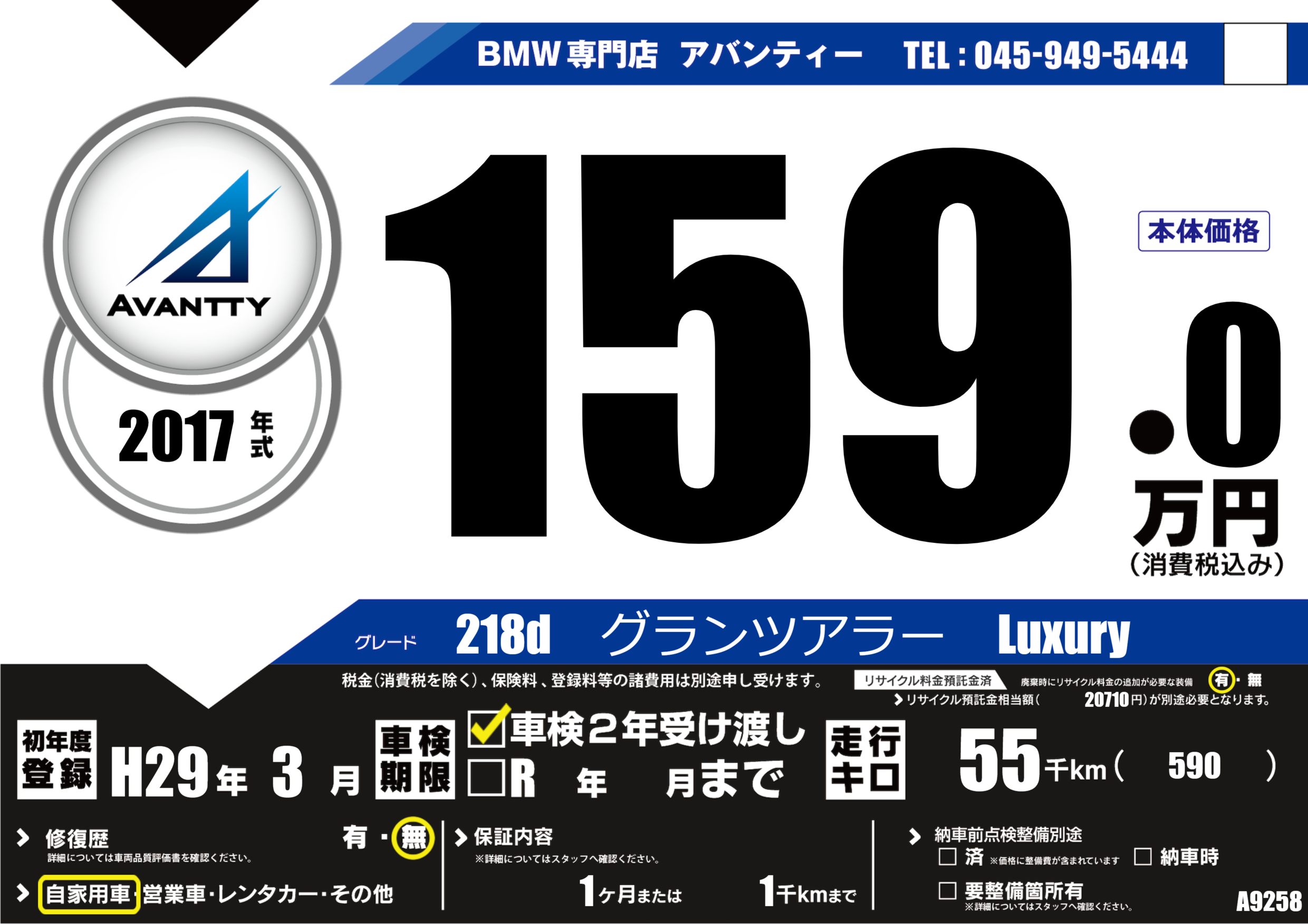 | 走行キロ | 5.5万km | 初年度登録 | H29年3月 |