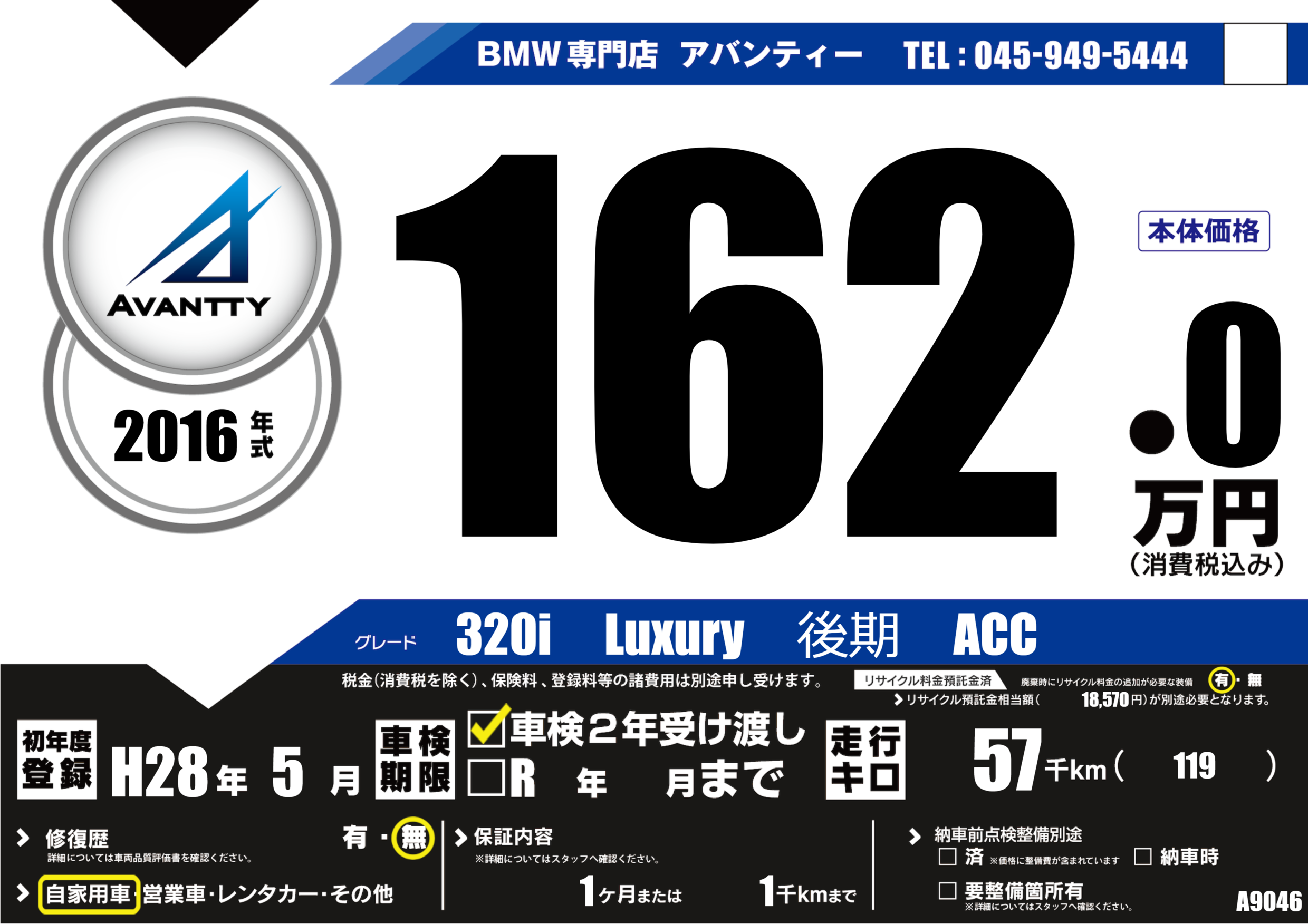 | 走行キロ | 5.7万km | 初年度登録 | H28年5月 |