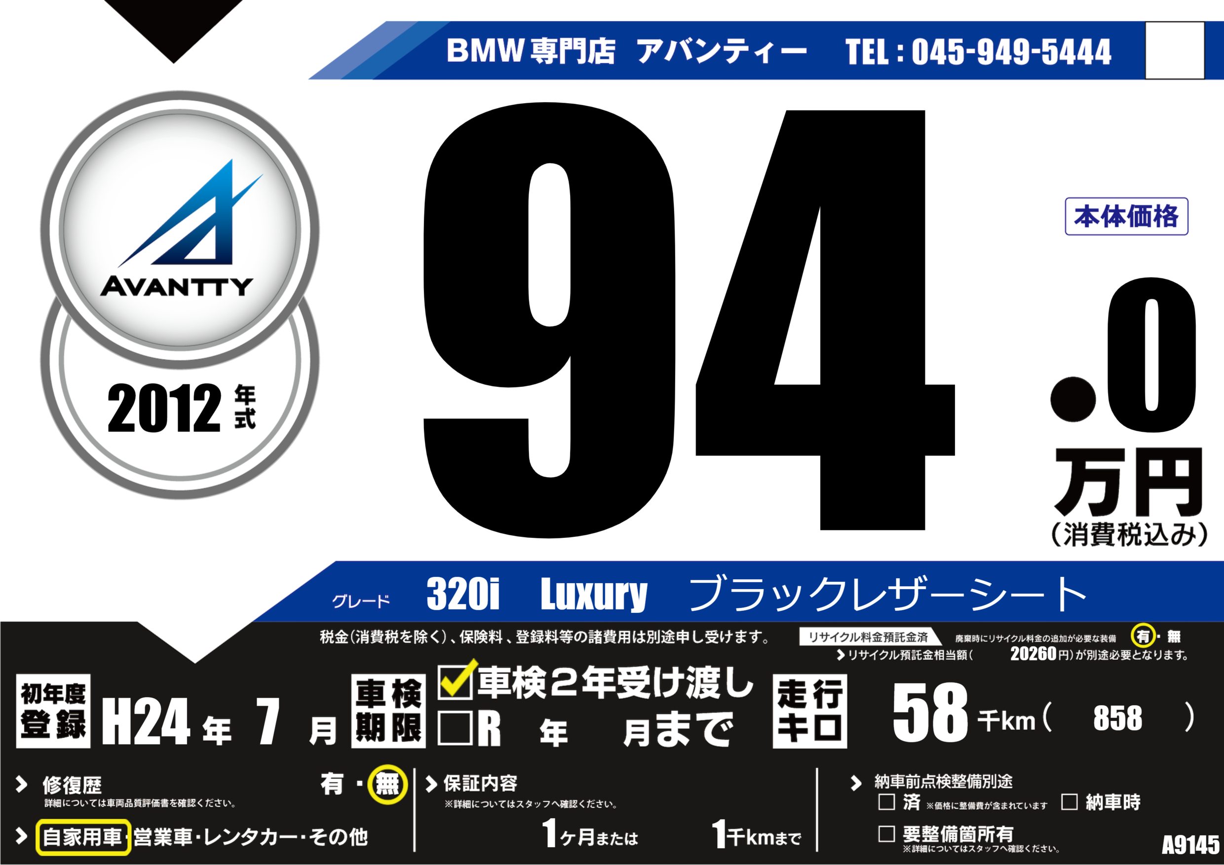 | リサイクル料金 預託済 |