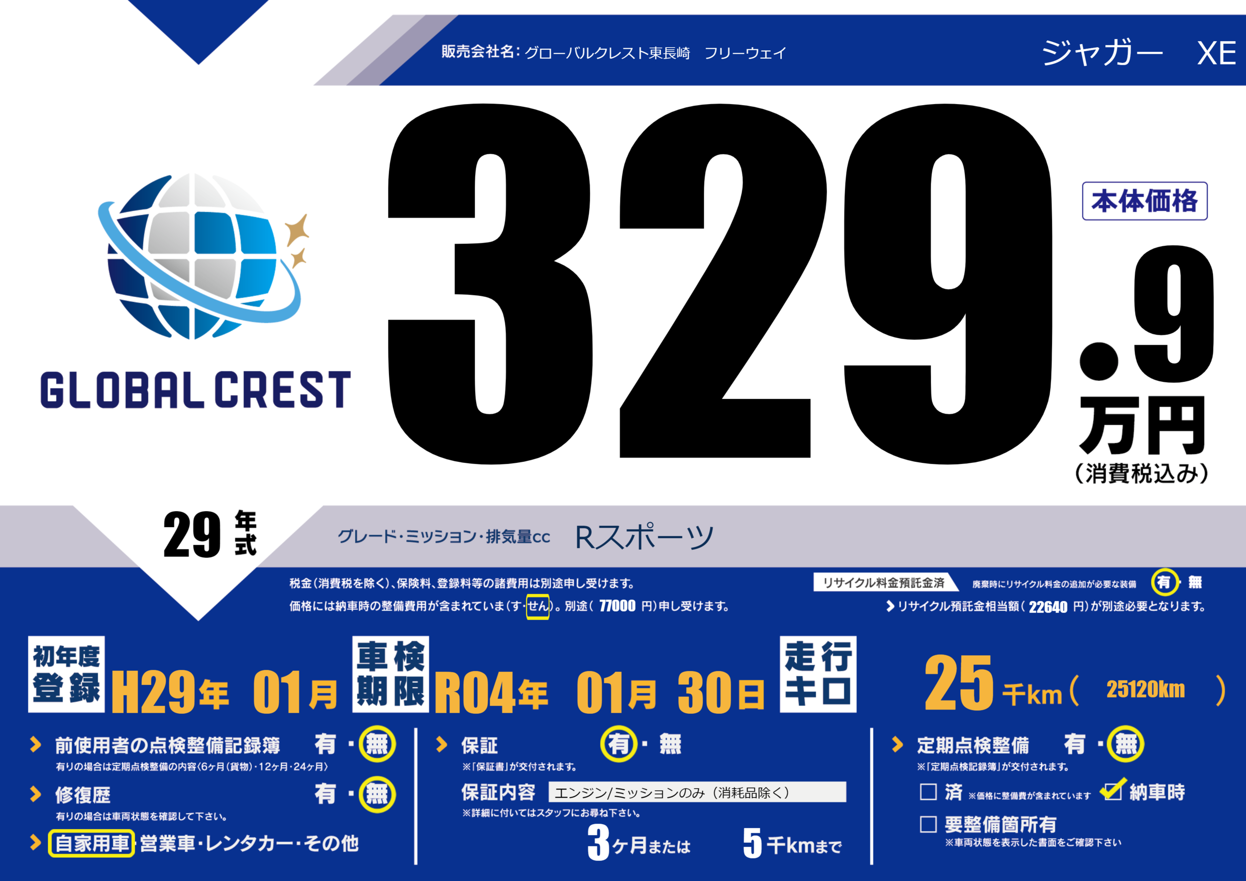 | 車名 | ジャガー XE | グレード ミッション 排気量 |