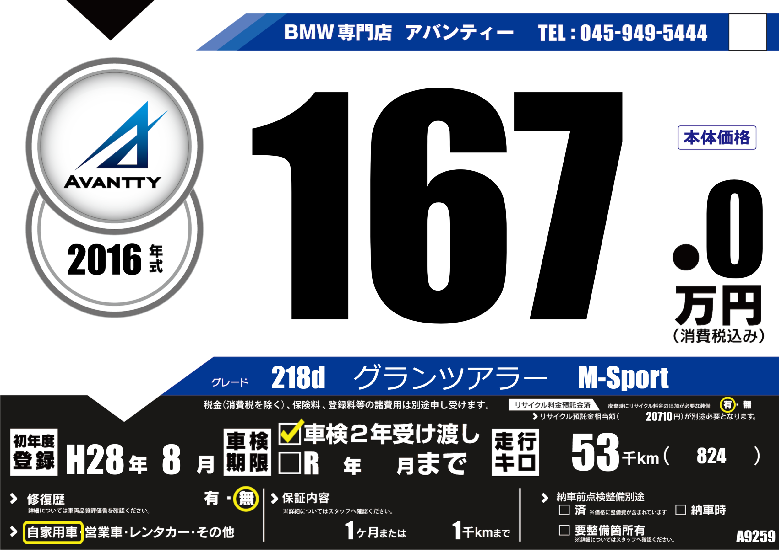 | 走行キロ | 5.3万km | 初年度登録 | H28年8月 |