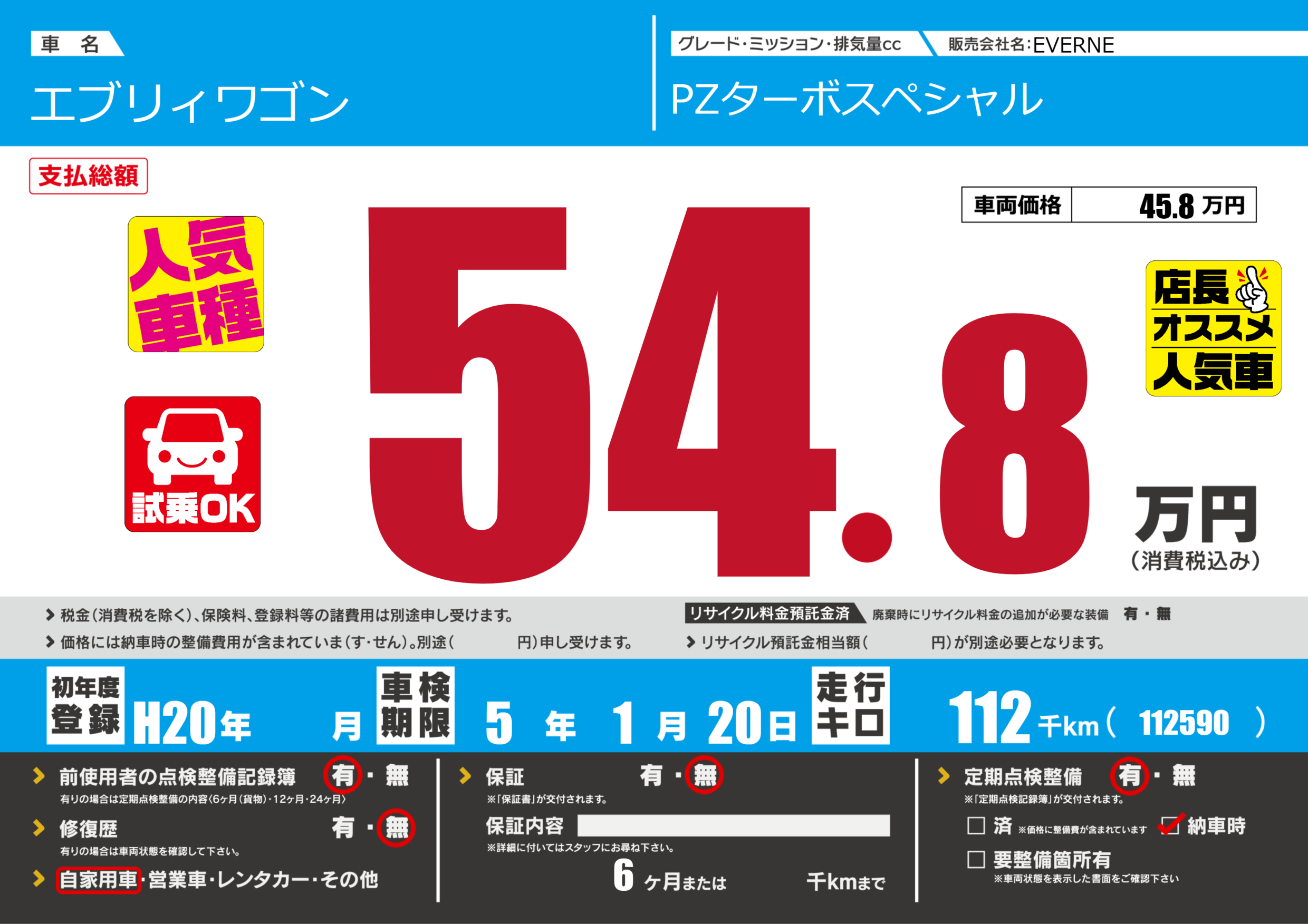 なし | 車検制限 | 5年1月20月 |