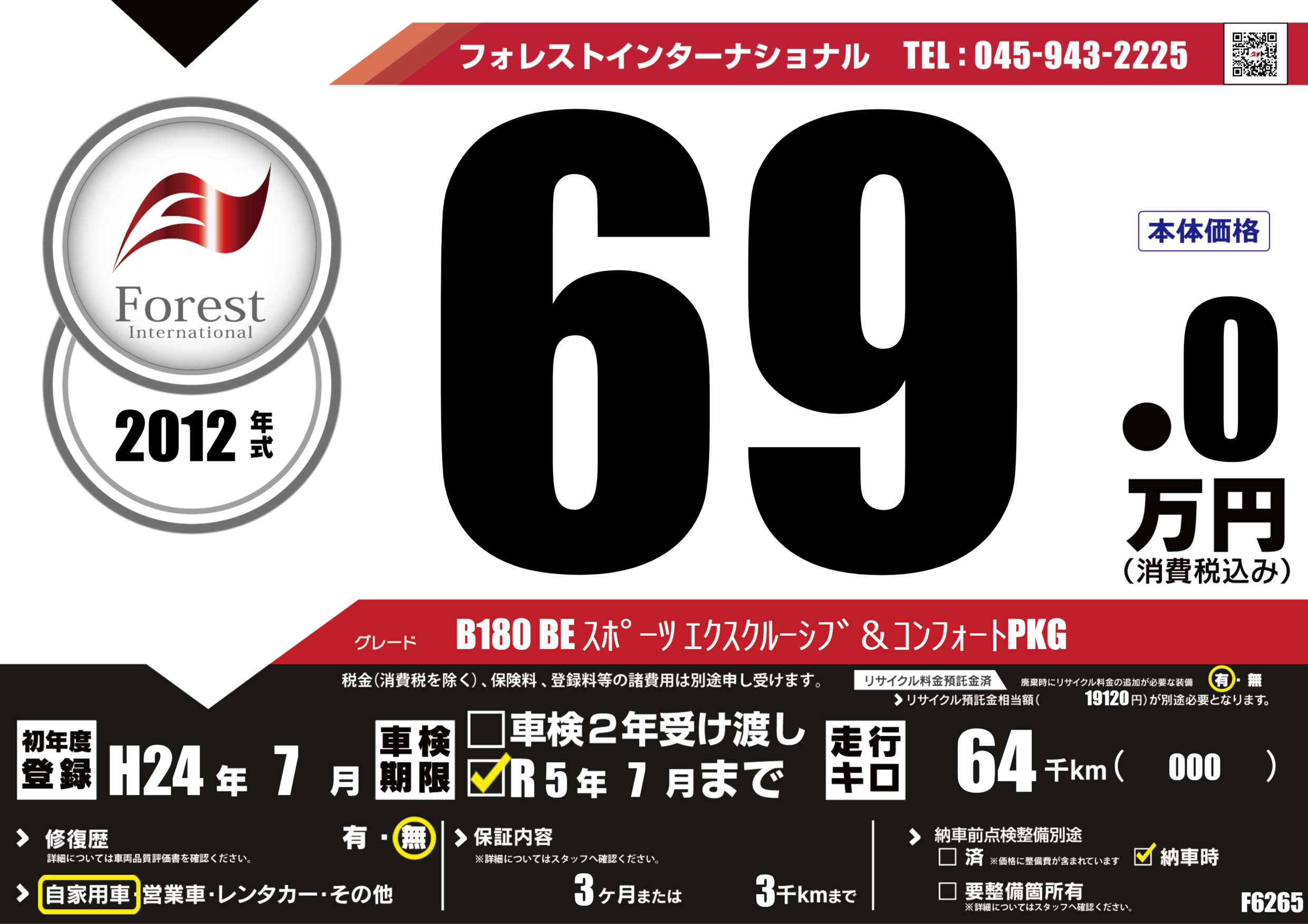 | 走行キロ | 6.4万km | 初年度登録 | H24年7月 |