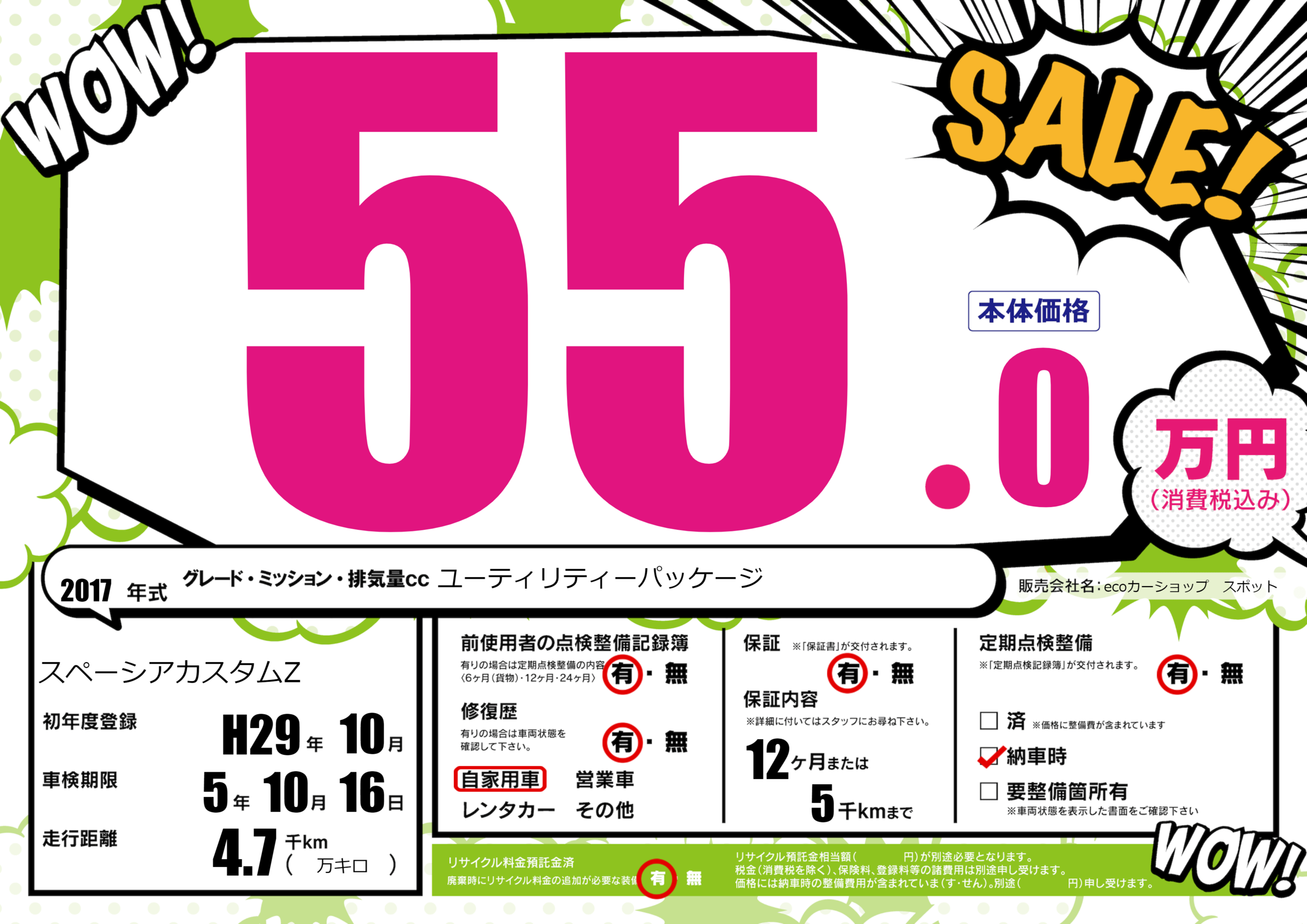 保証付き 保証内容(---) 12ヶ月または(5)千kmまで |