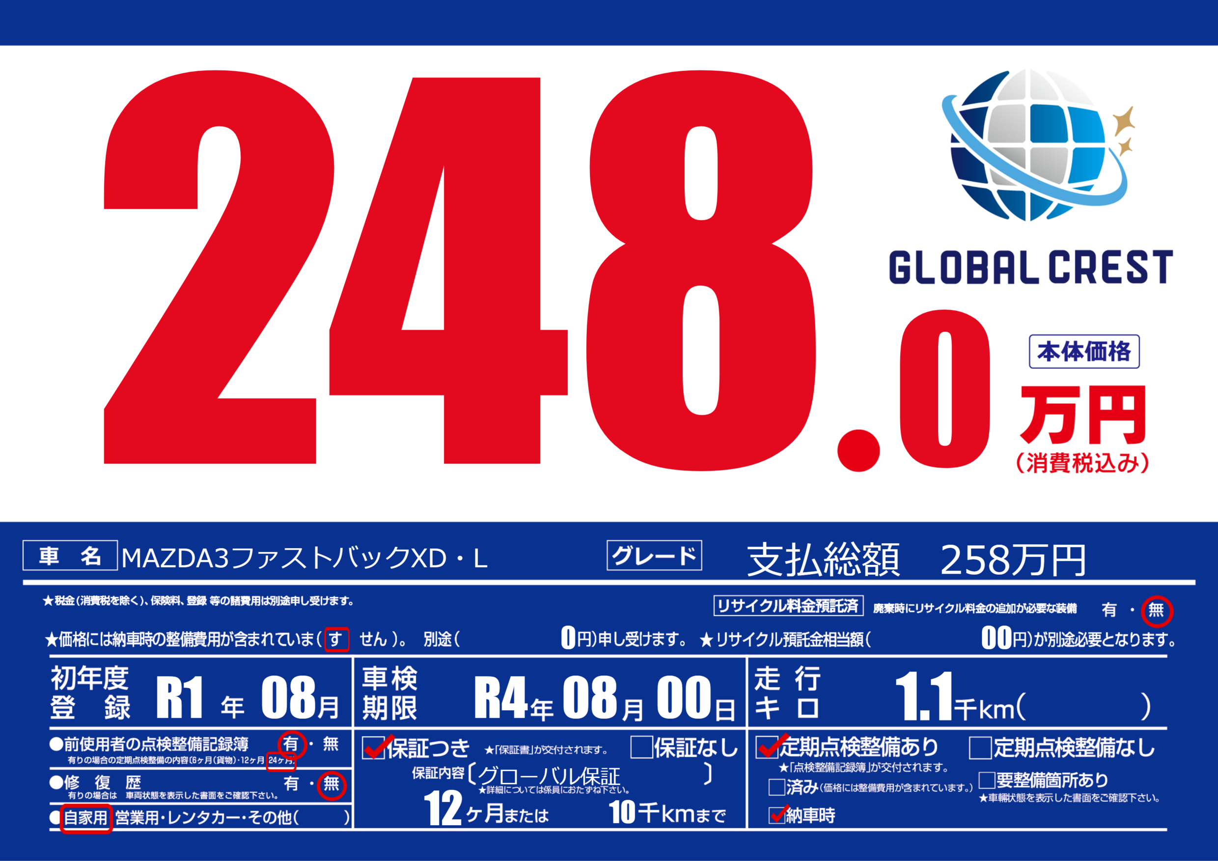 | 車検制限 | R4年 08月 00日 | ||