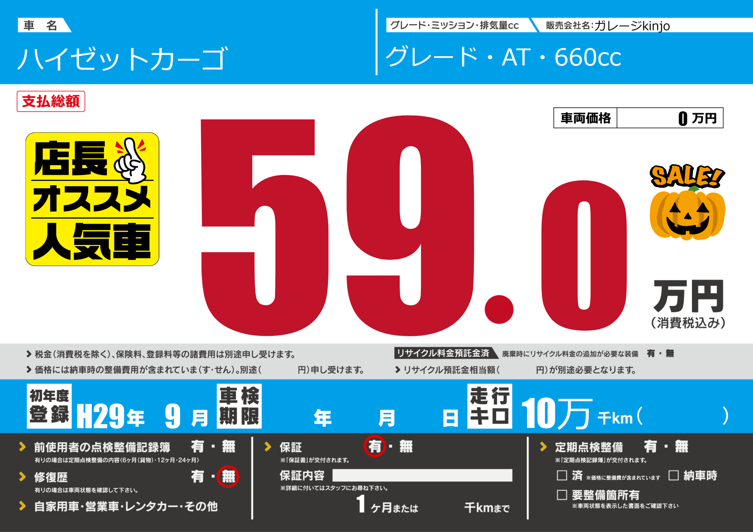 | 車名 | ハイゼットカーゴ | グレード ミッション 排気量 |