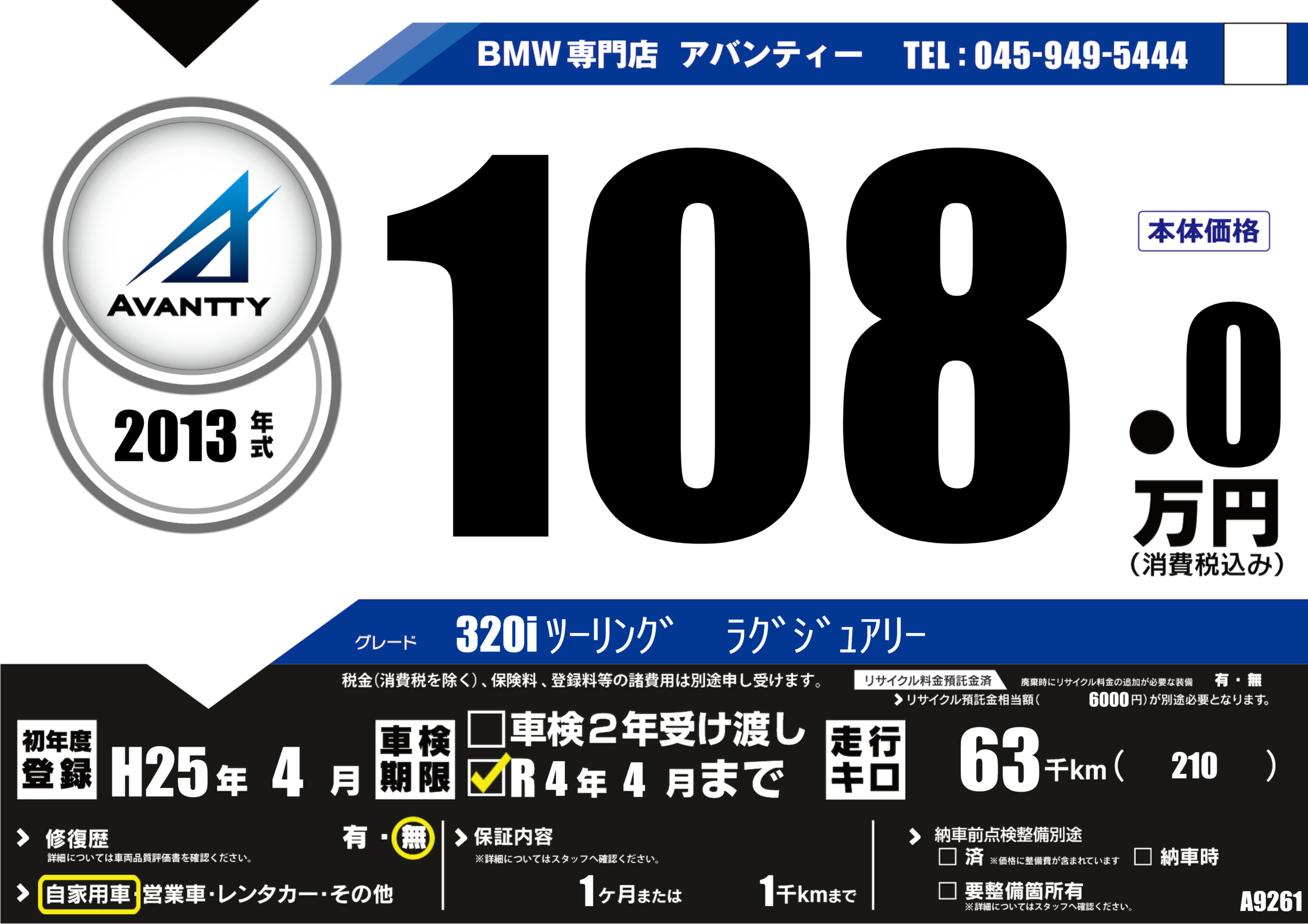 | 走行キロ | 6.3万km | 初年度登録 | H25年4月 |