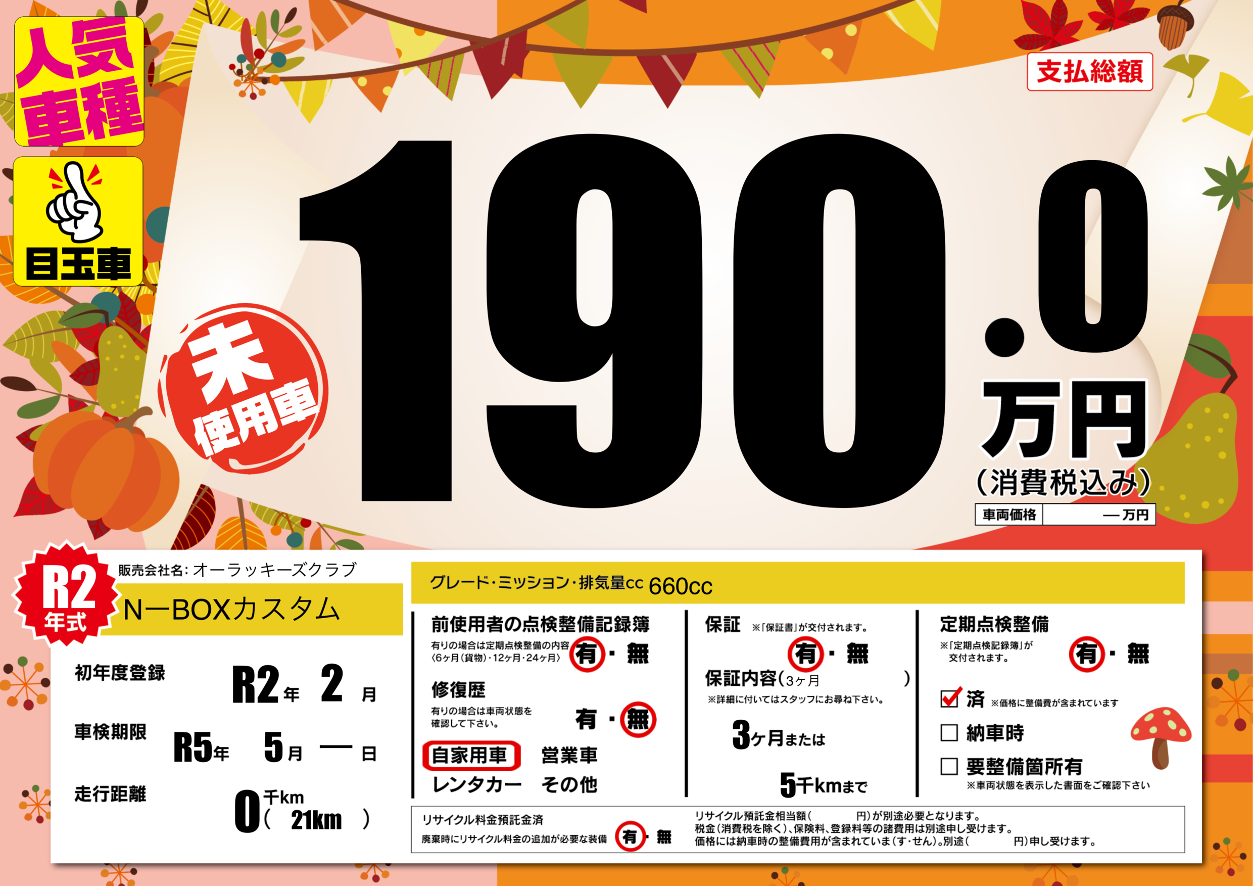 | 定期点検整備 | 定期点検整備あり 定期点検整備済み | ||