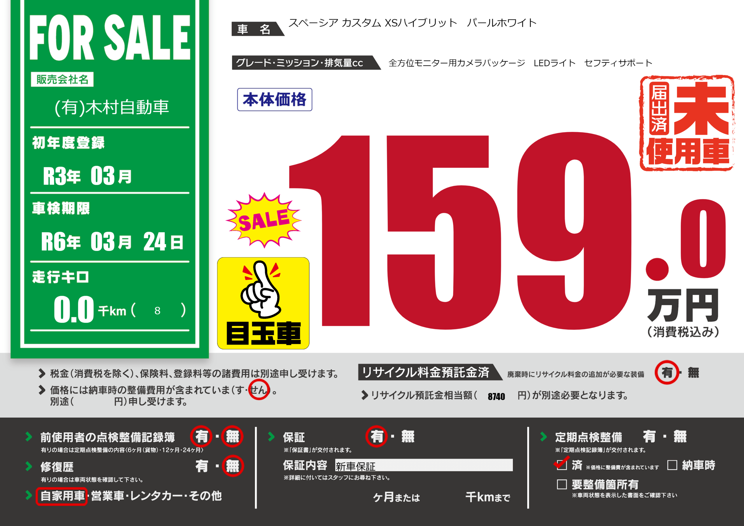| 定期点検整備 | 定期点検整備済み | ||