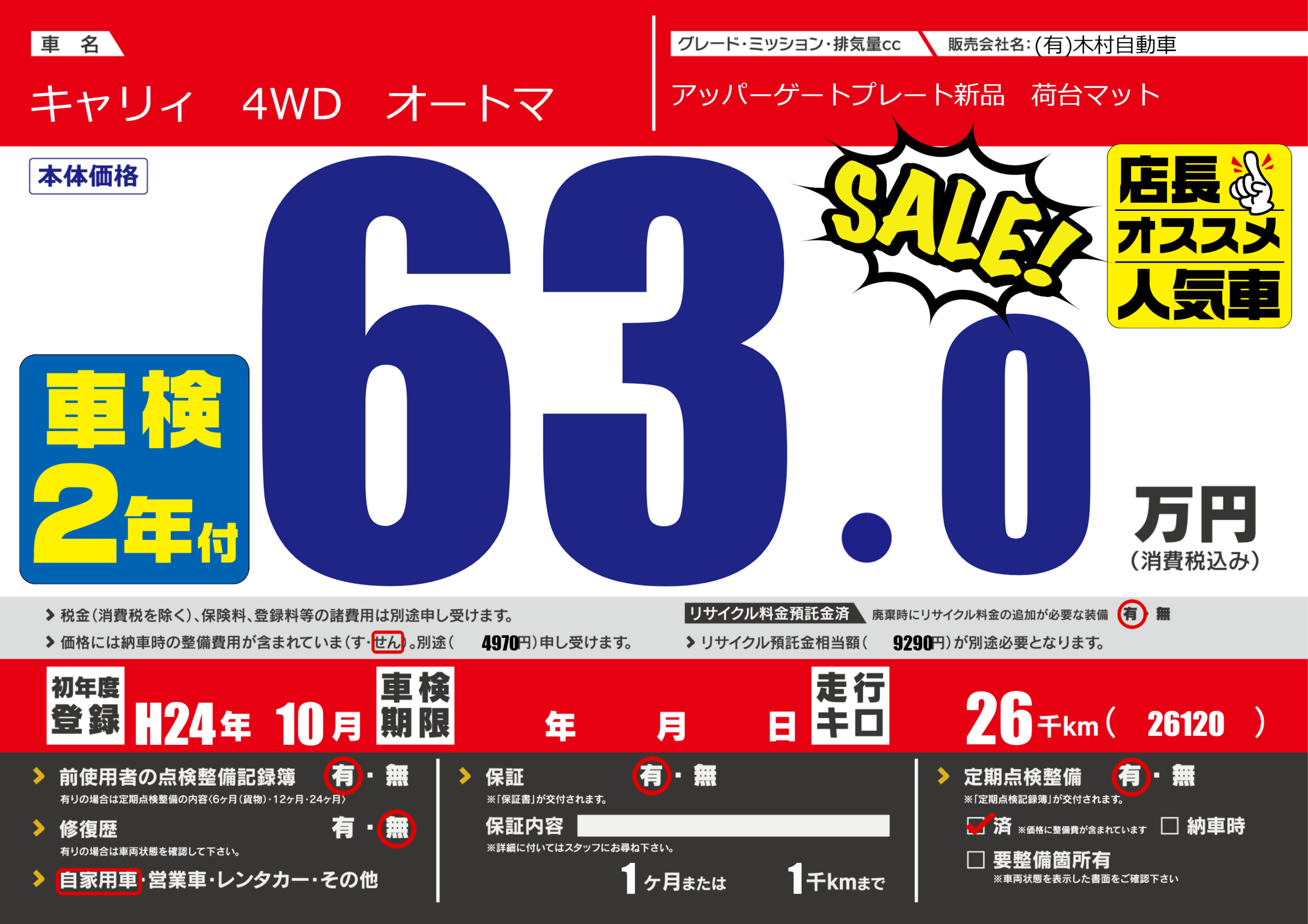 | 定期点検整備 | 定期点検整備あり 定期点検整備済み | ||