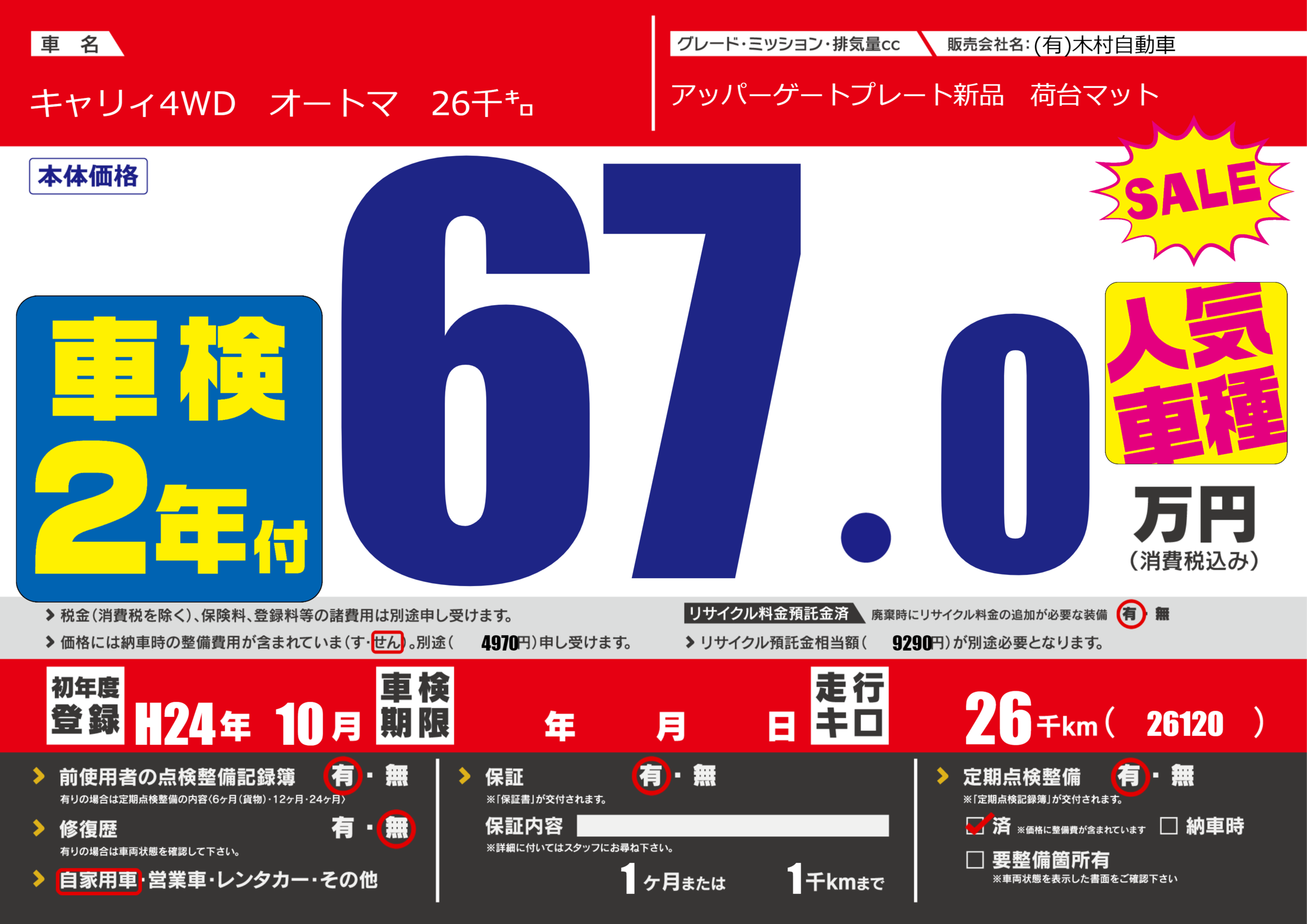 | 定期点検整備 | 定期点検整備あり 定期点検整備済み | ||