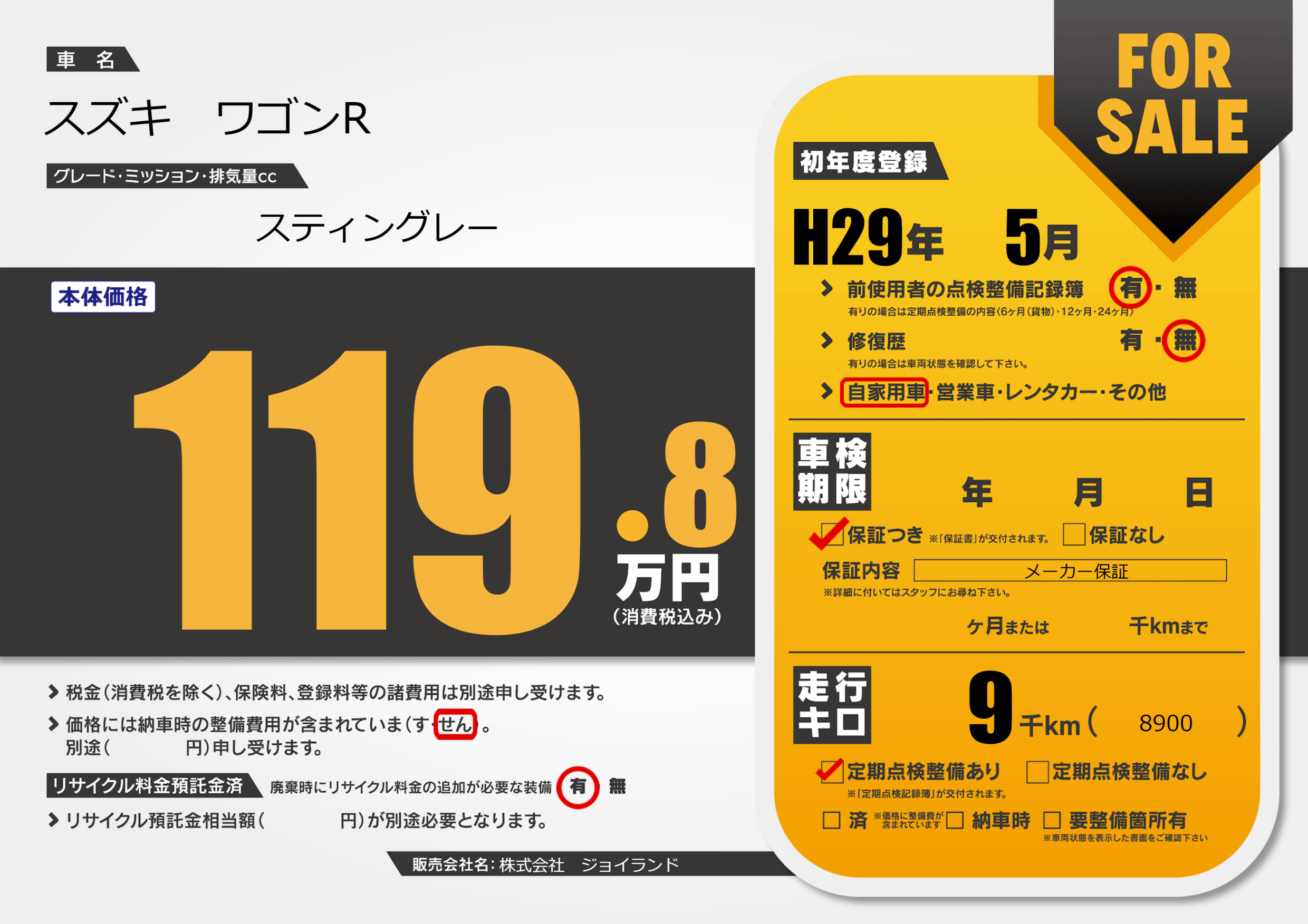 | 車名 | スズキ ワゴンR | グレード ミッション 排気量 |