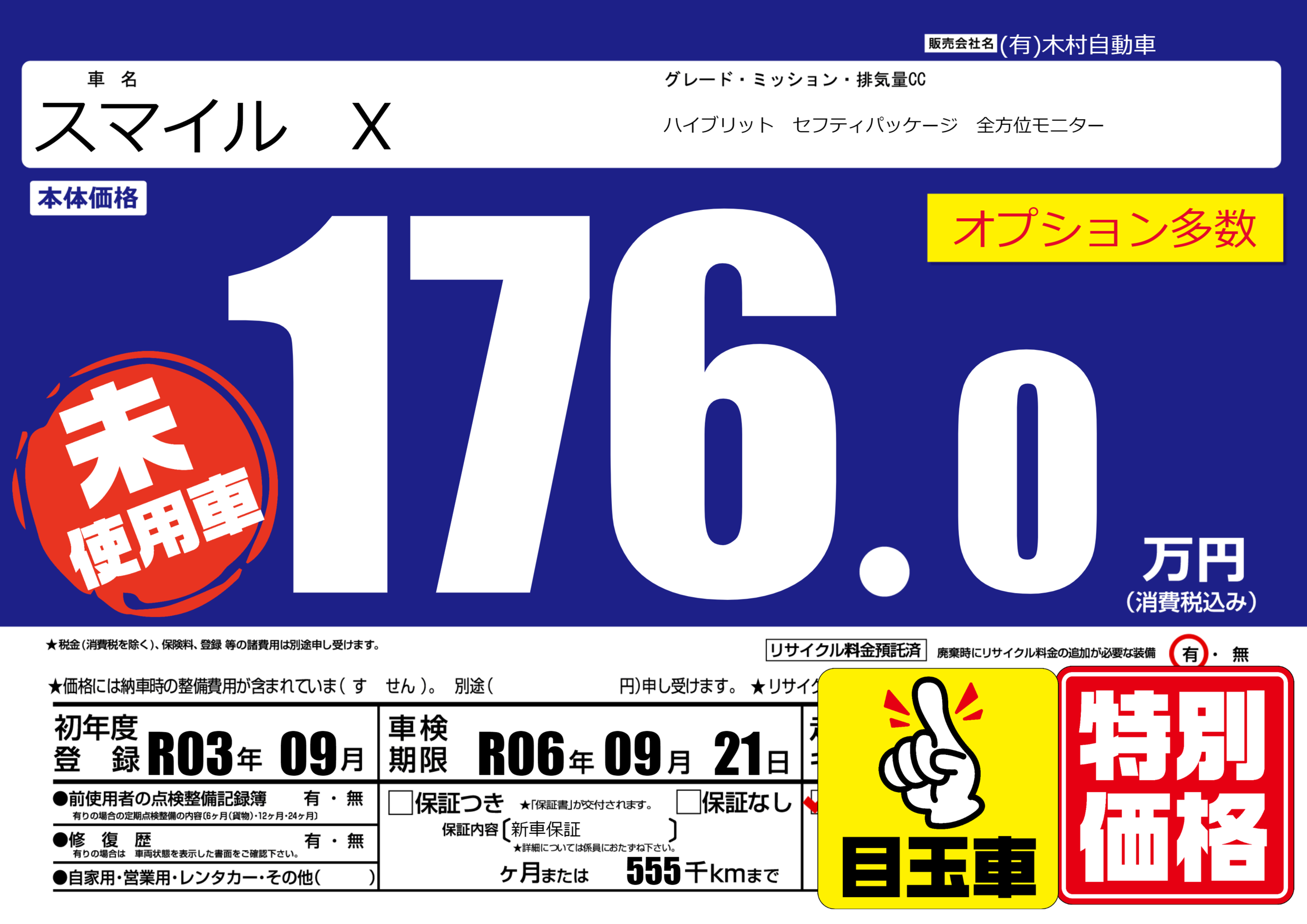 | 車名 | スマイル X | グレード ミッション 排気量 |