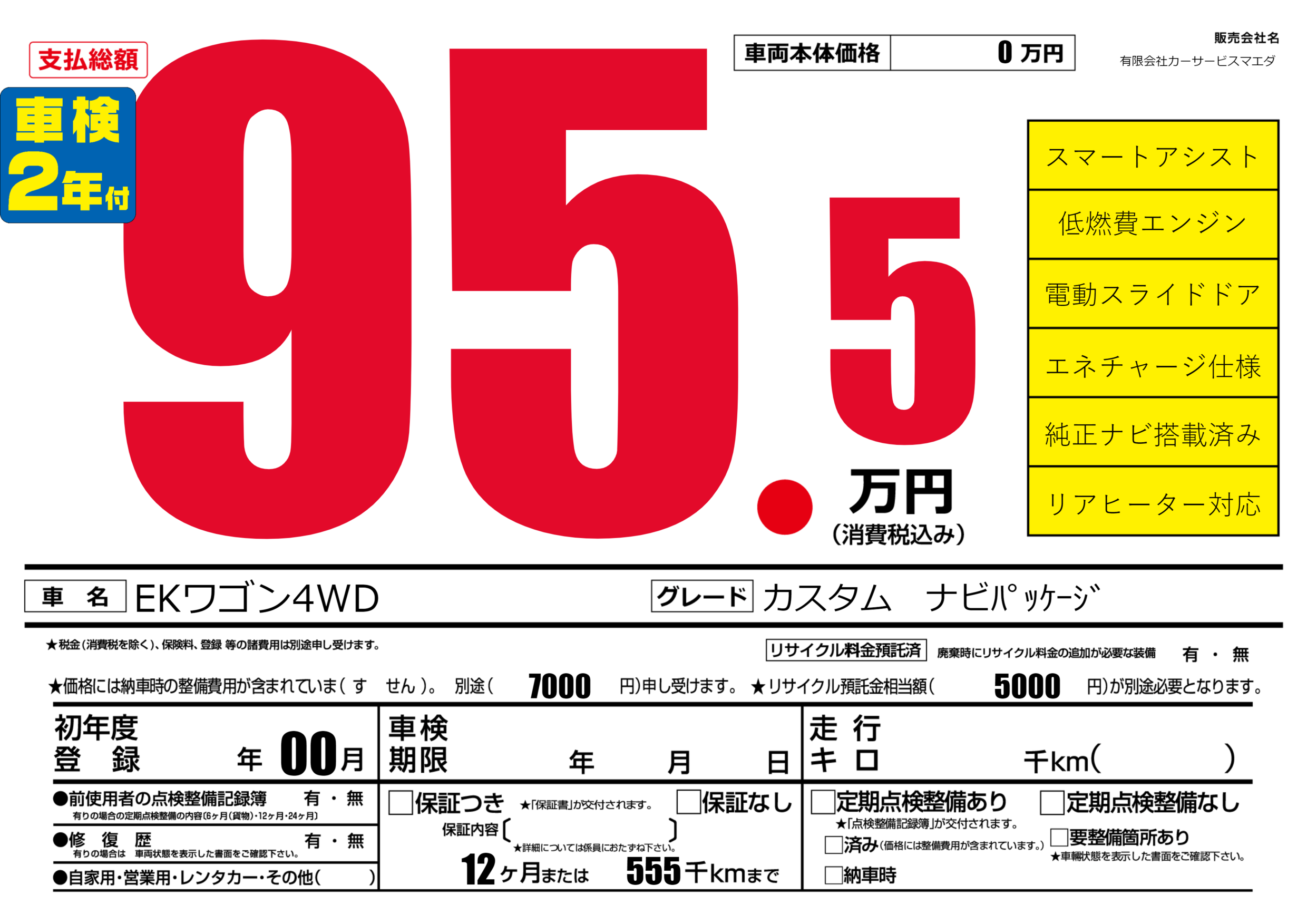 | 車名 | EKワゴン4WD | グレード ミッション 排気量 |
