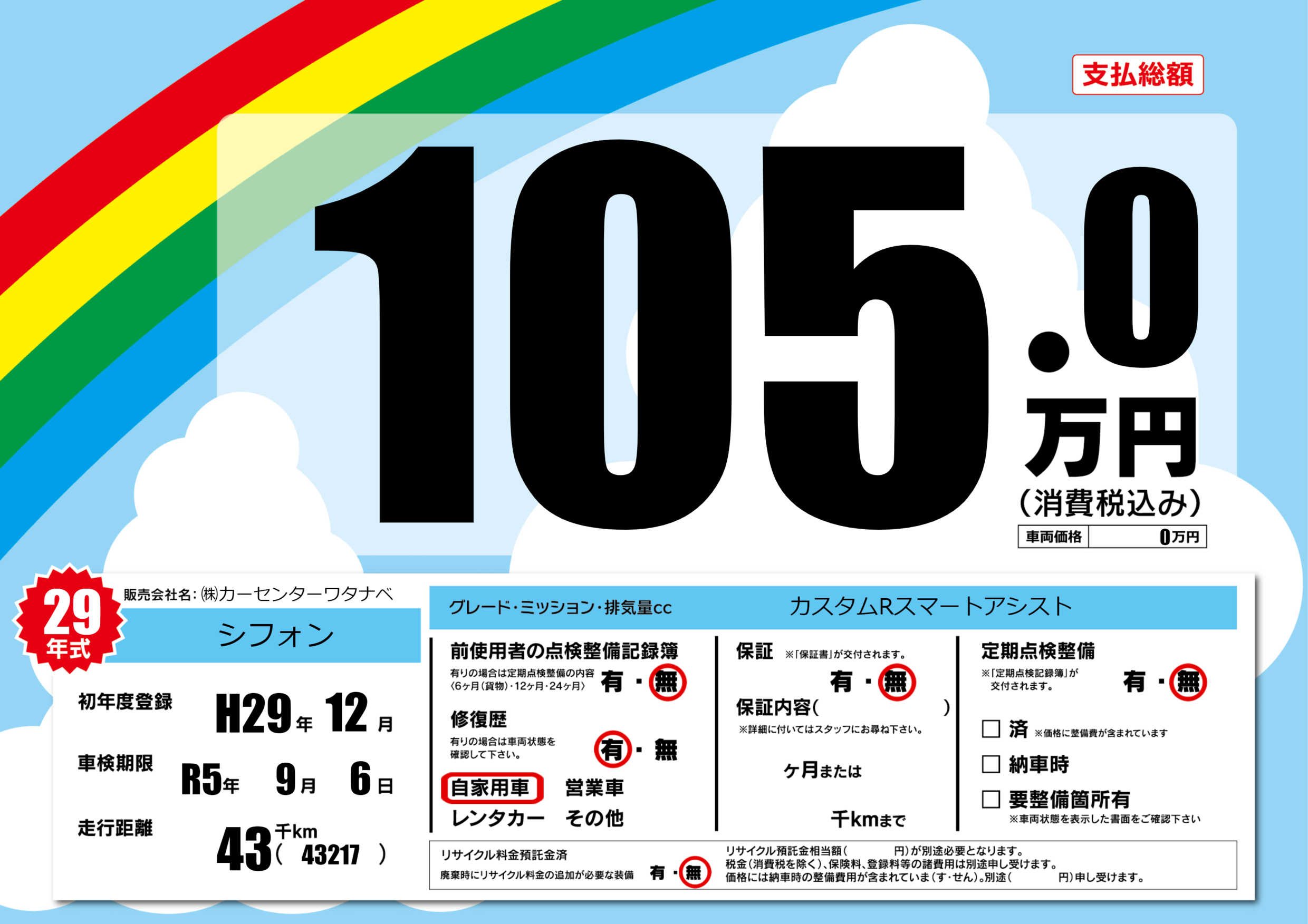 | 車名 | シフォン | グレード ミッション 排気量 |
