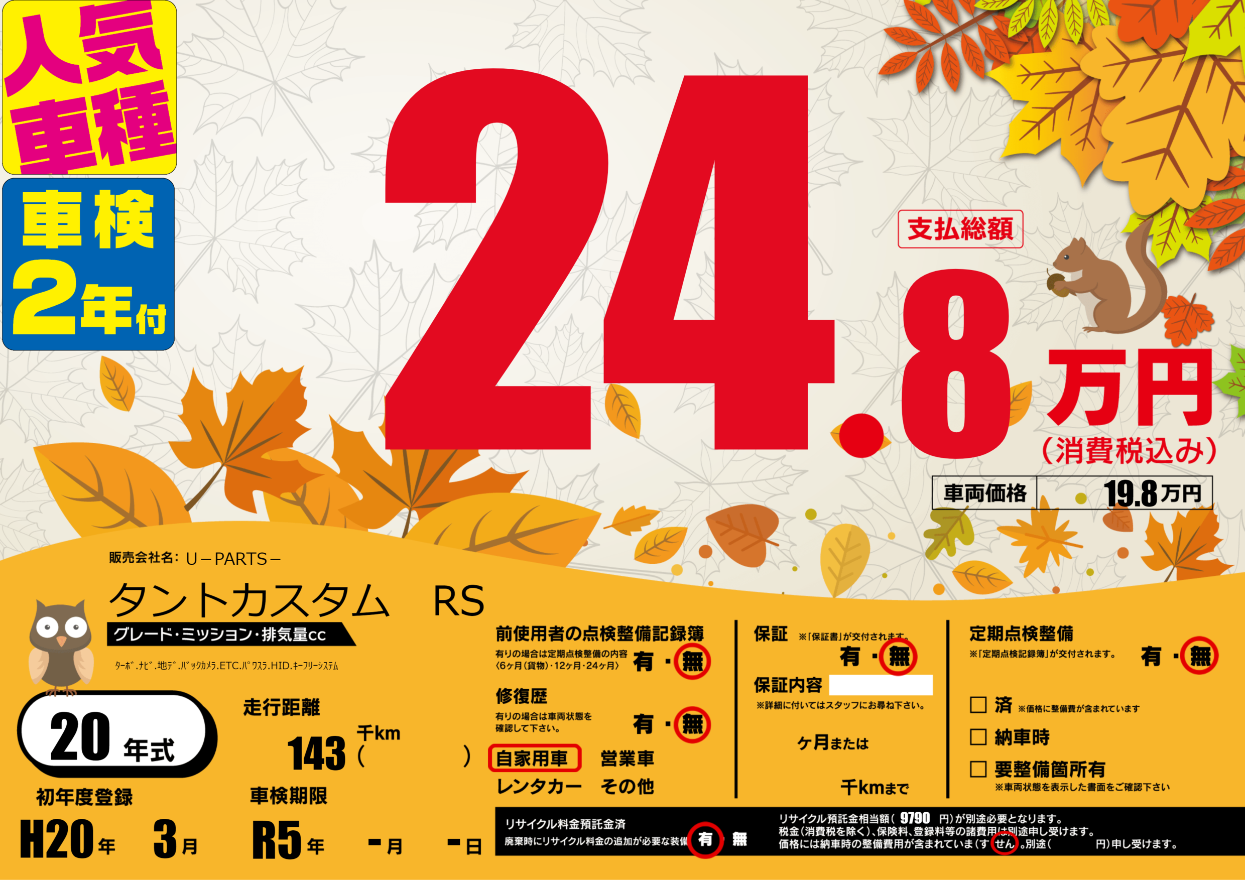 なし | 車検制限 | R5年-月-月 |