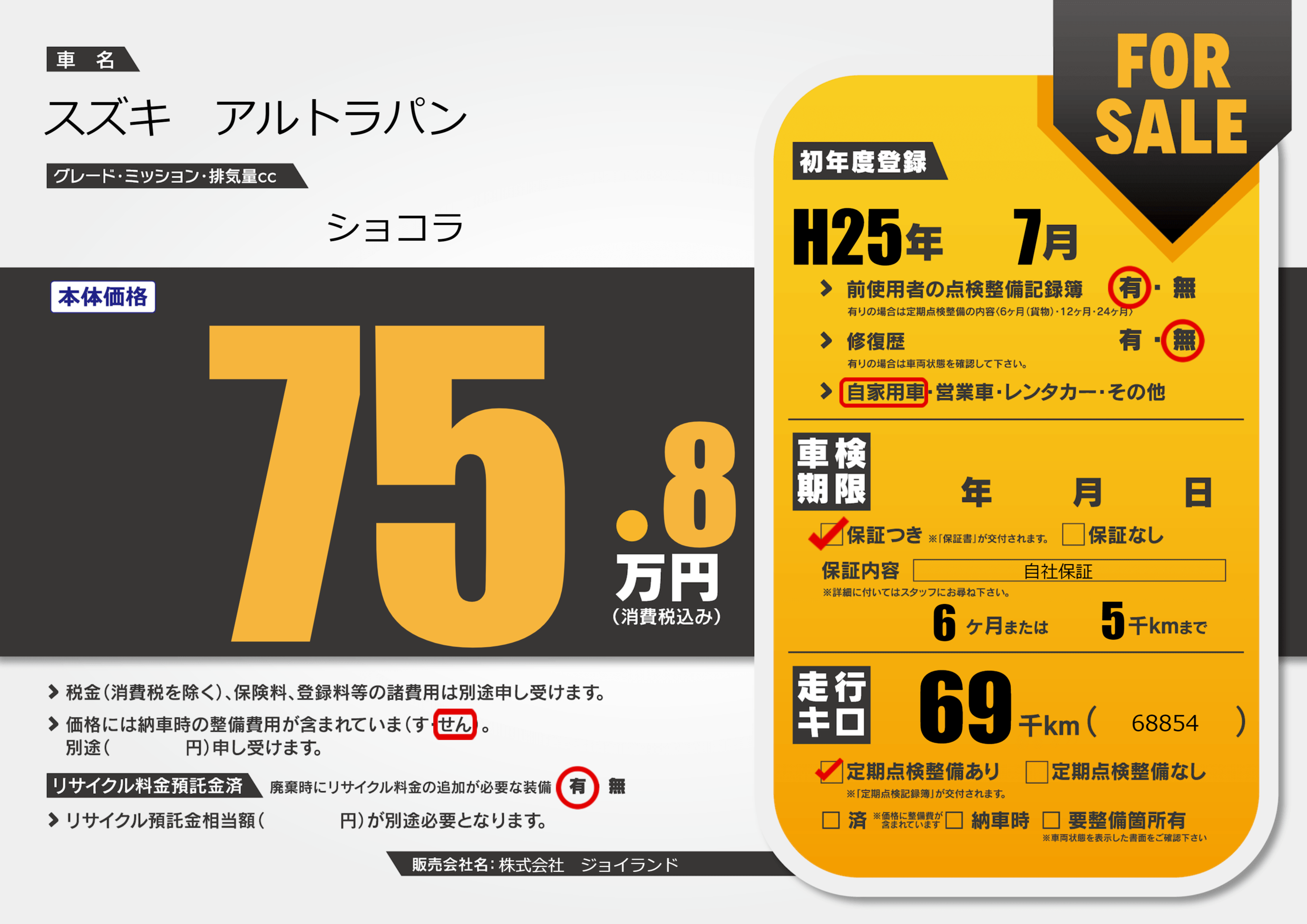 | 走行キロ | 6.9万km | 初年度登録 | H25年7月 |