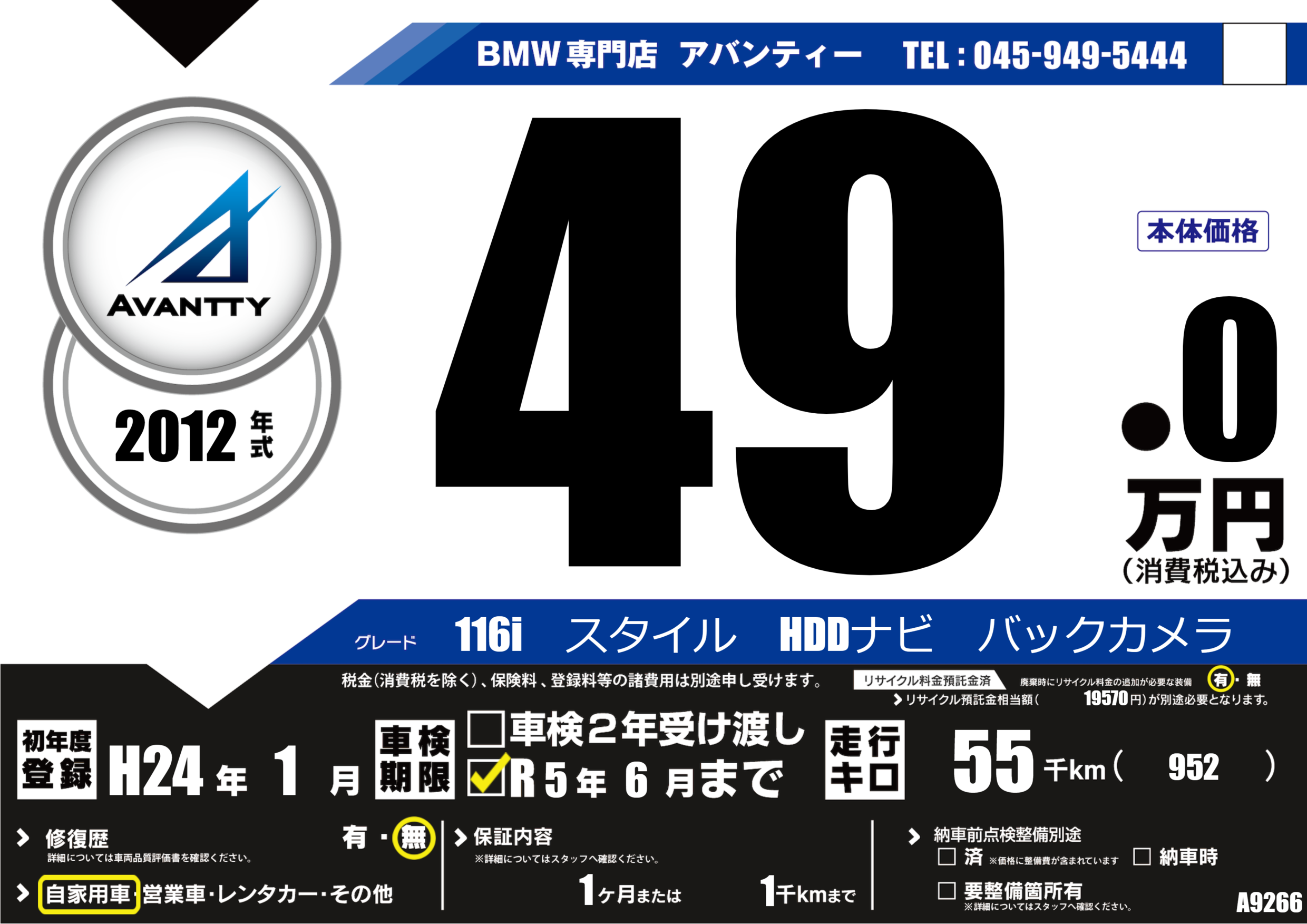 | 走行キロ | 5.5万km | 初年度登録 | H24年1月 |