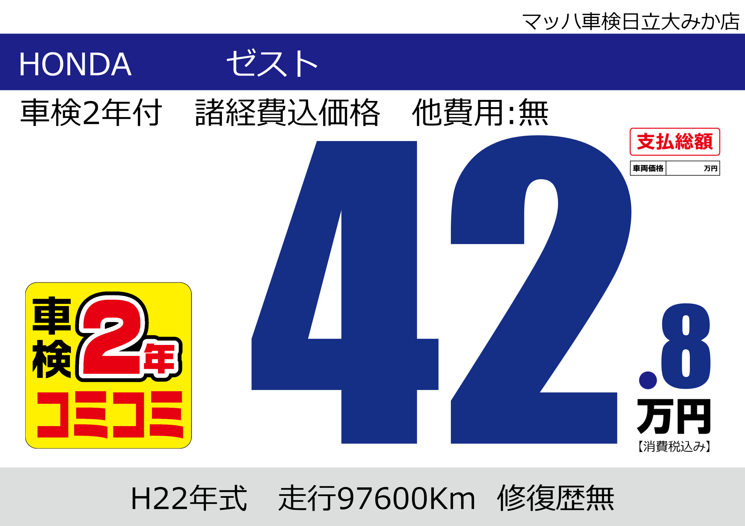 | 車名 | HONDA ゼスト | グレード ミッション 排気量 |