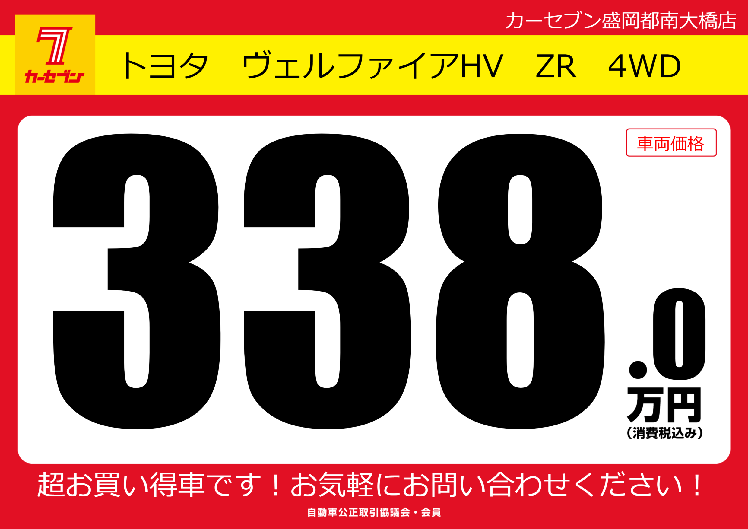 | 車名 | トヨタ ヴェルファイアHV ZR 4WD | グレード ミッション 排気量 |