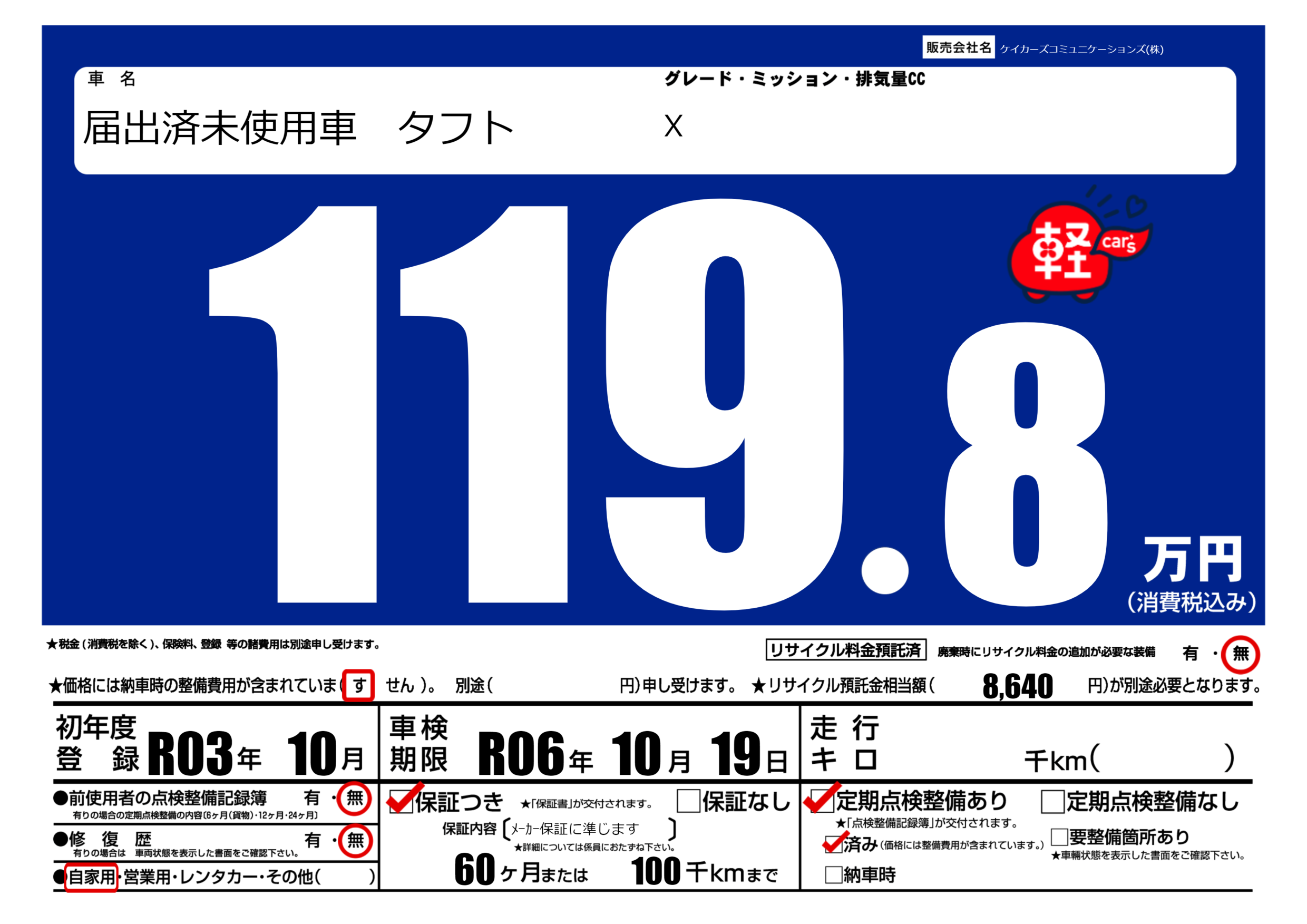 | 定期点検整備 | 定期点検整備あり 定期点検整備済み | ||