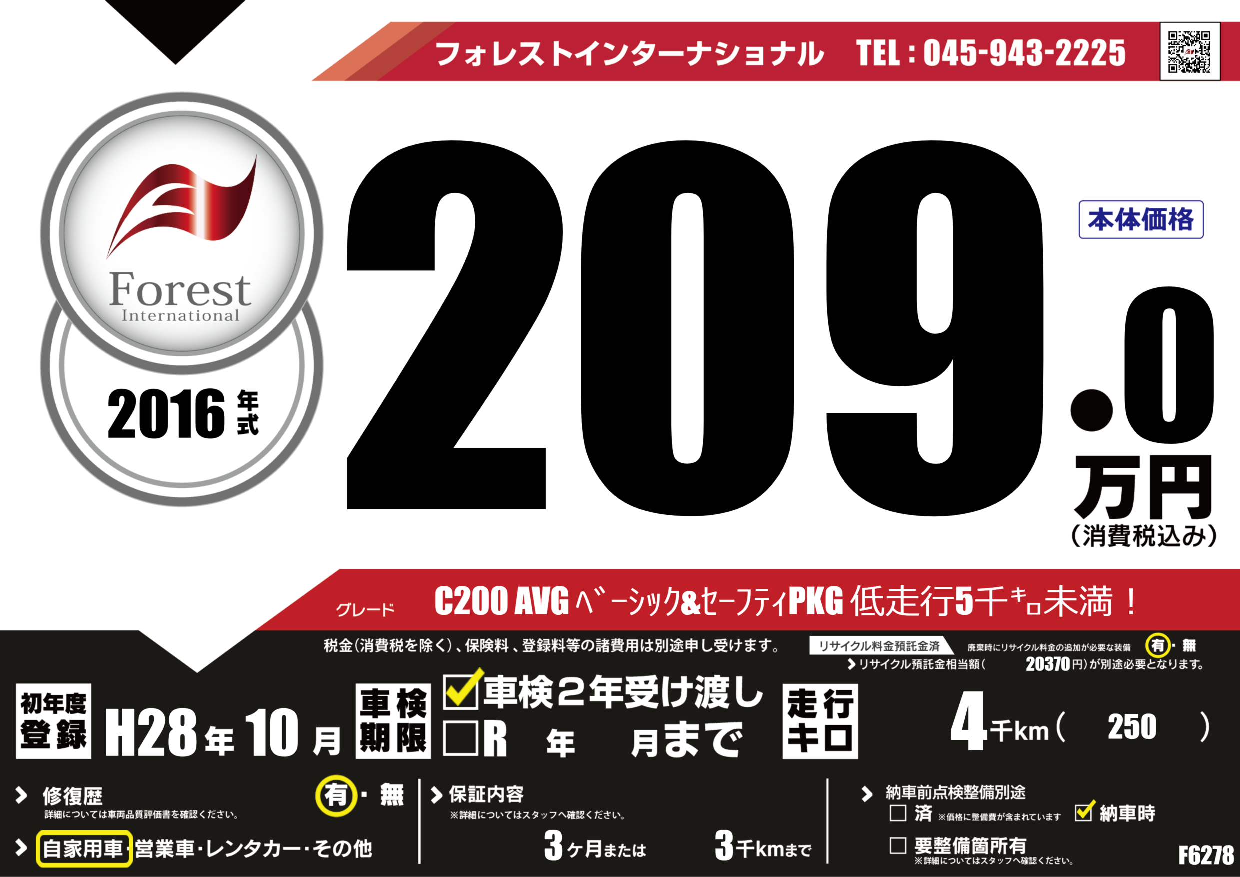 C200 AVG ベーシック&セーフティPKG 低走行5千㌔未満! |