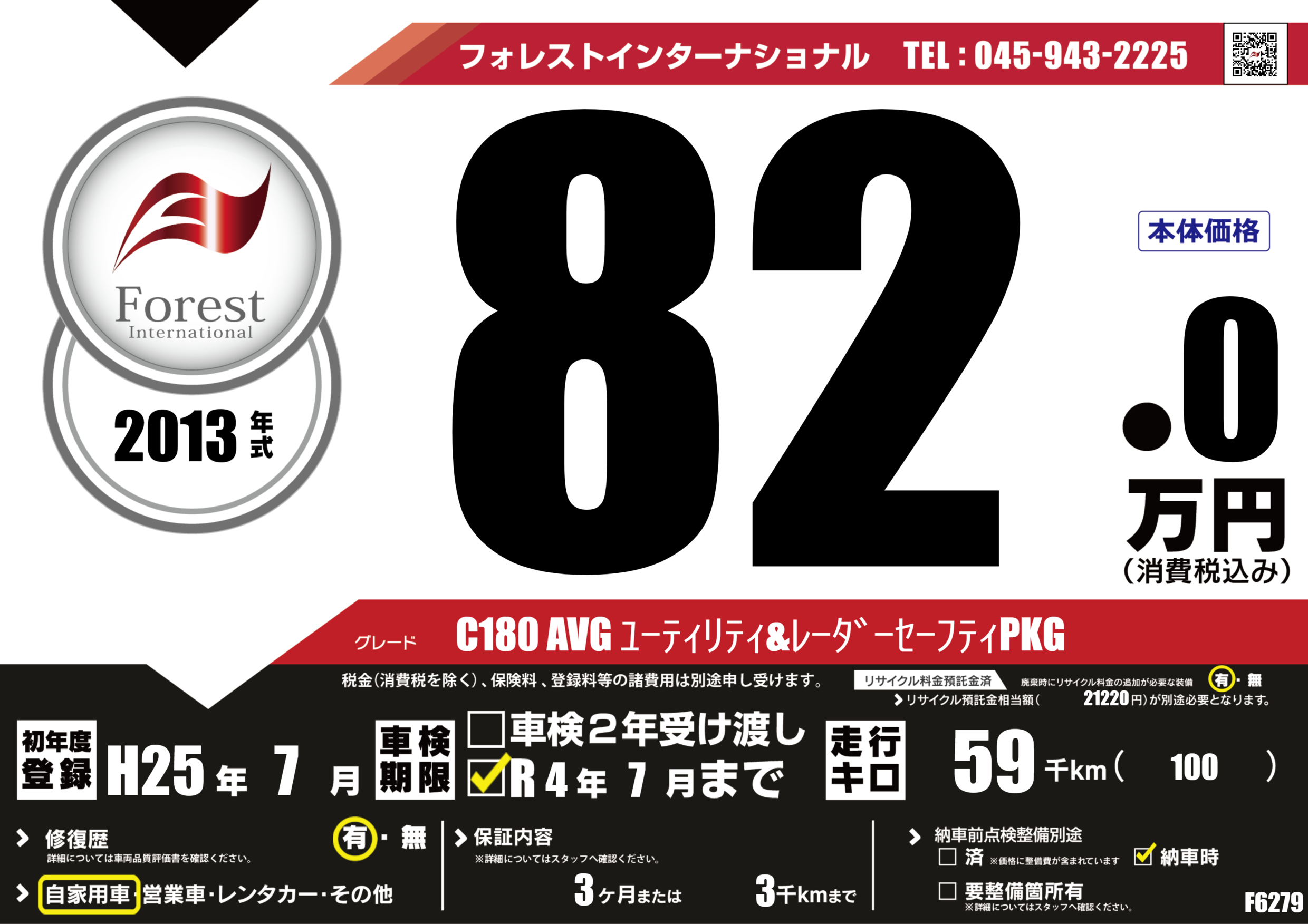 | 走行キロ | 5.9万km | 初年度登録 | H25年7月 |