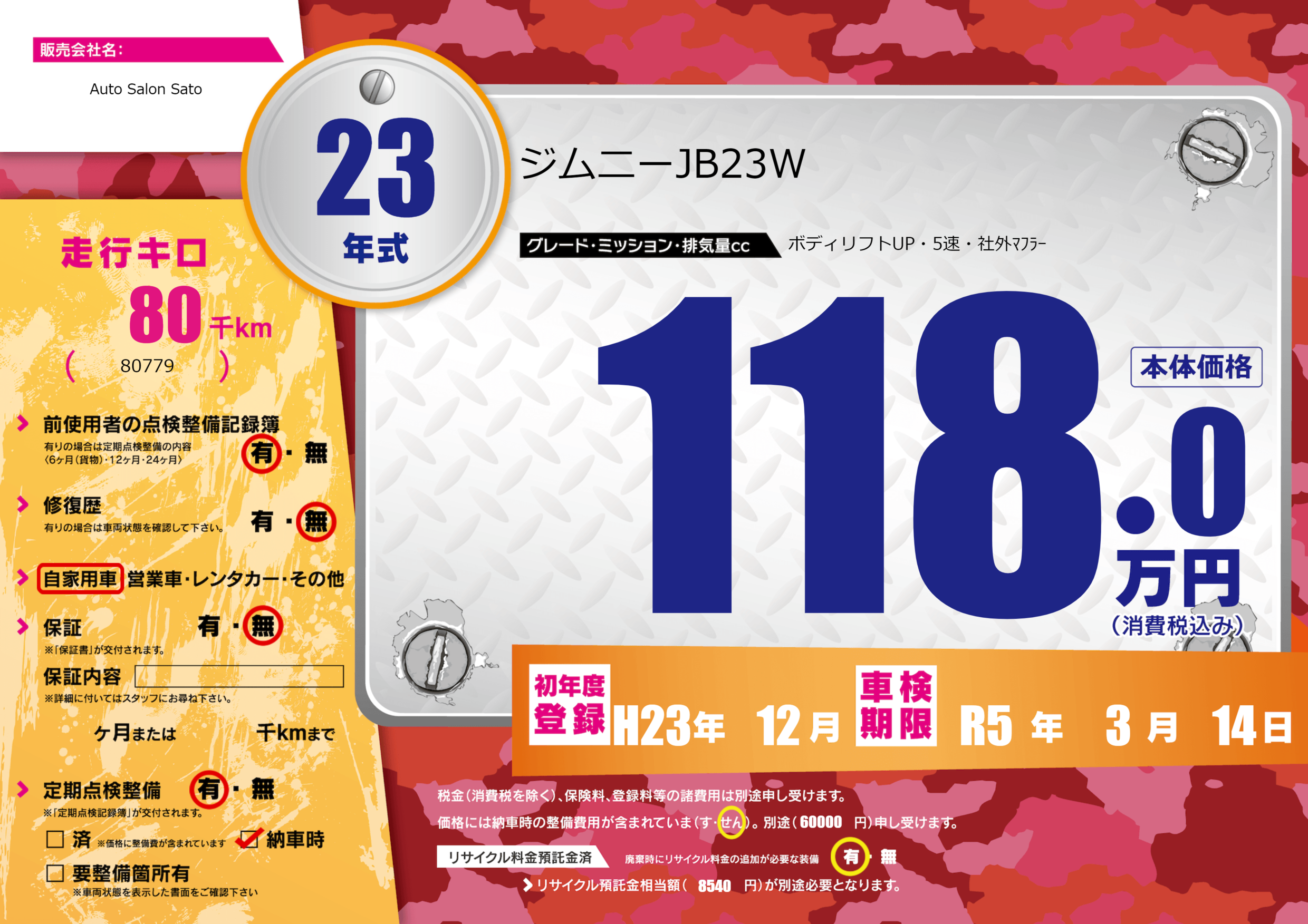 車検制限 | R5年3月14月 |