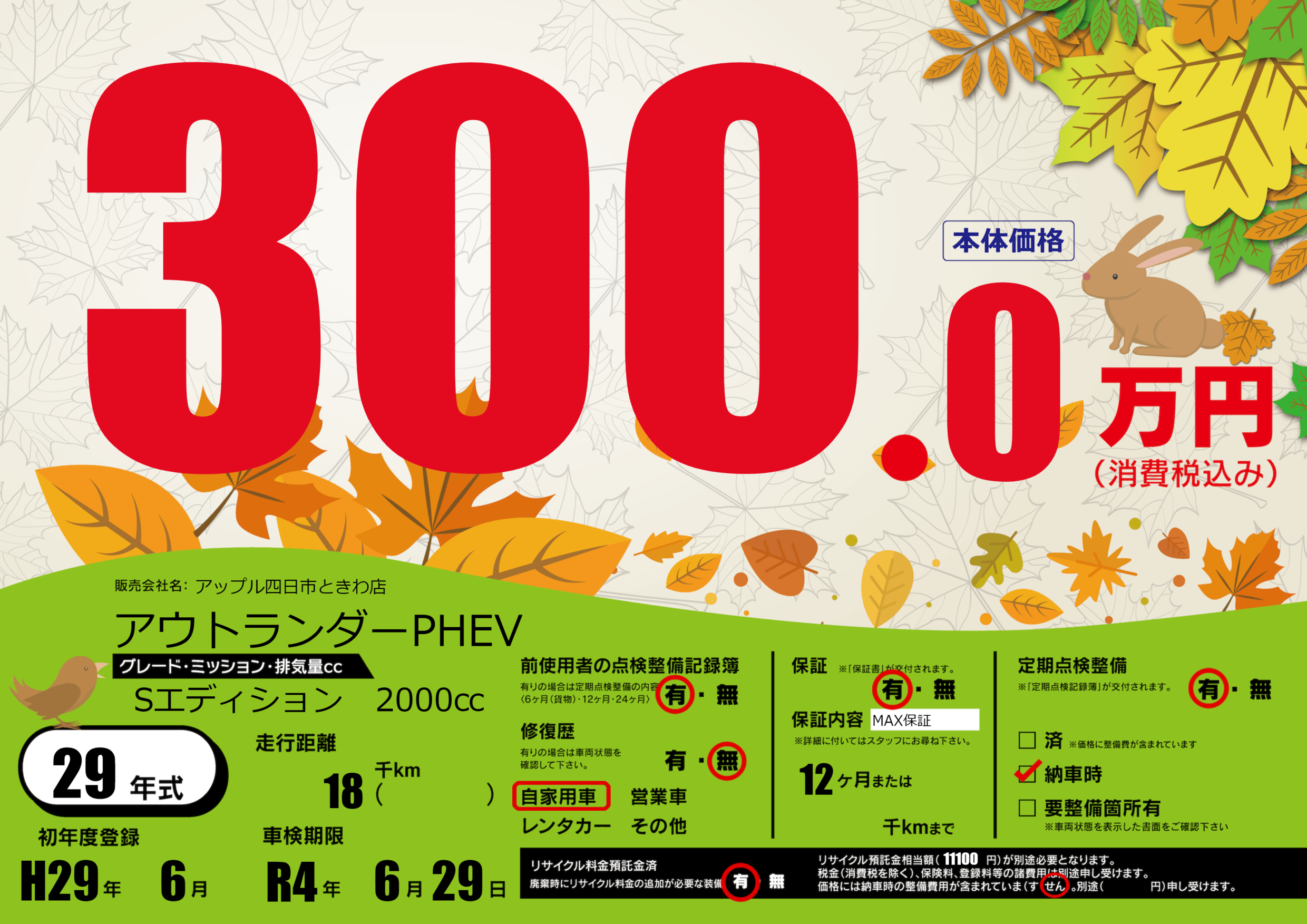 | 車名 | アウトランダーPHEV | グレード ミッション 排気量 |