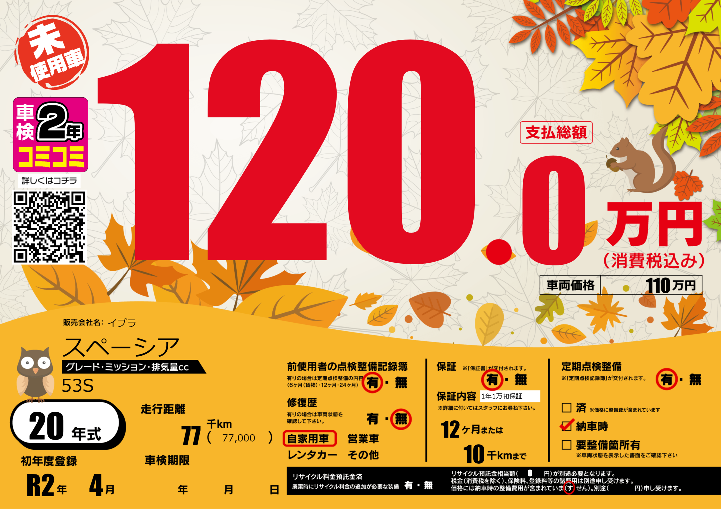| 走行キロ | 7.7万km | 初年度登録 | R2年4月 |