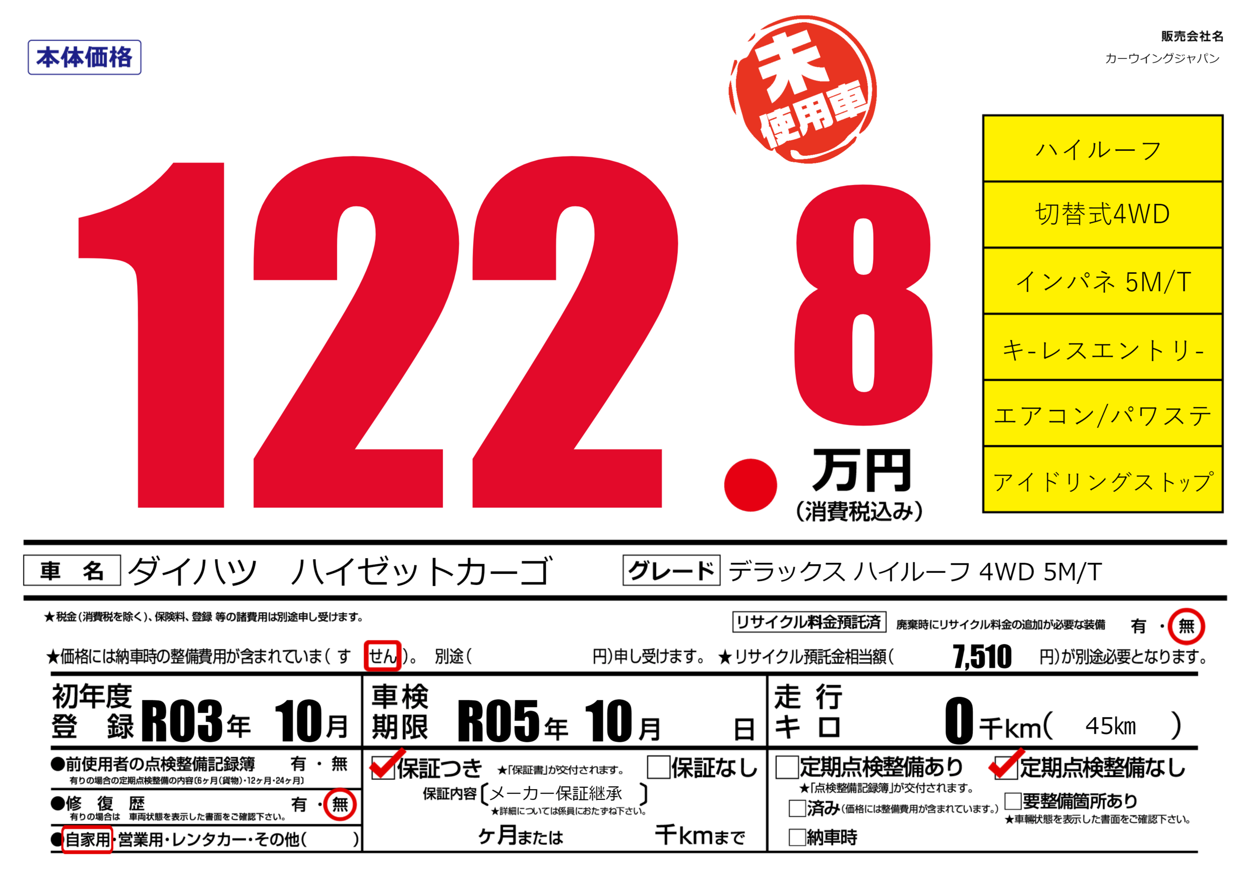 なし | 車検制限 | R05年10月---月 |