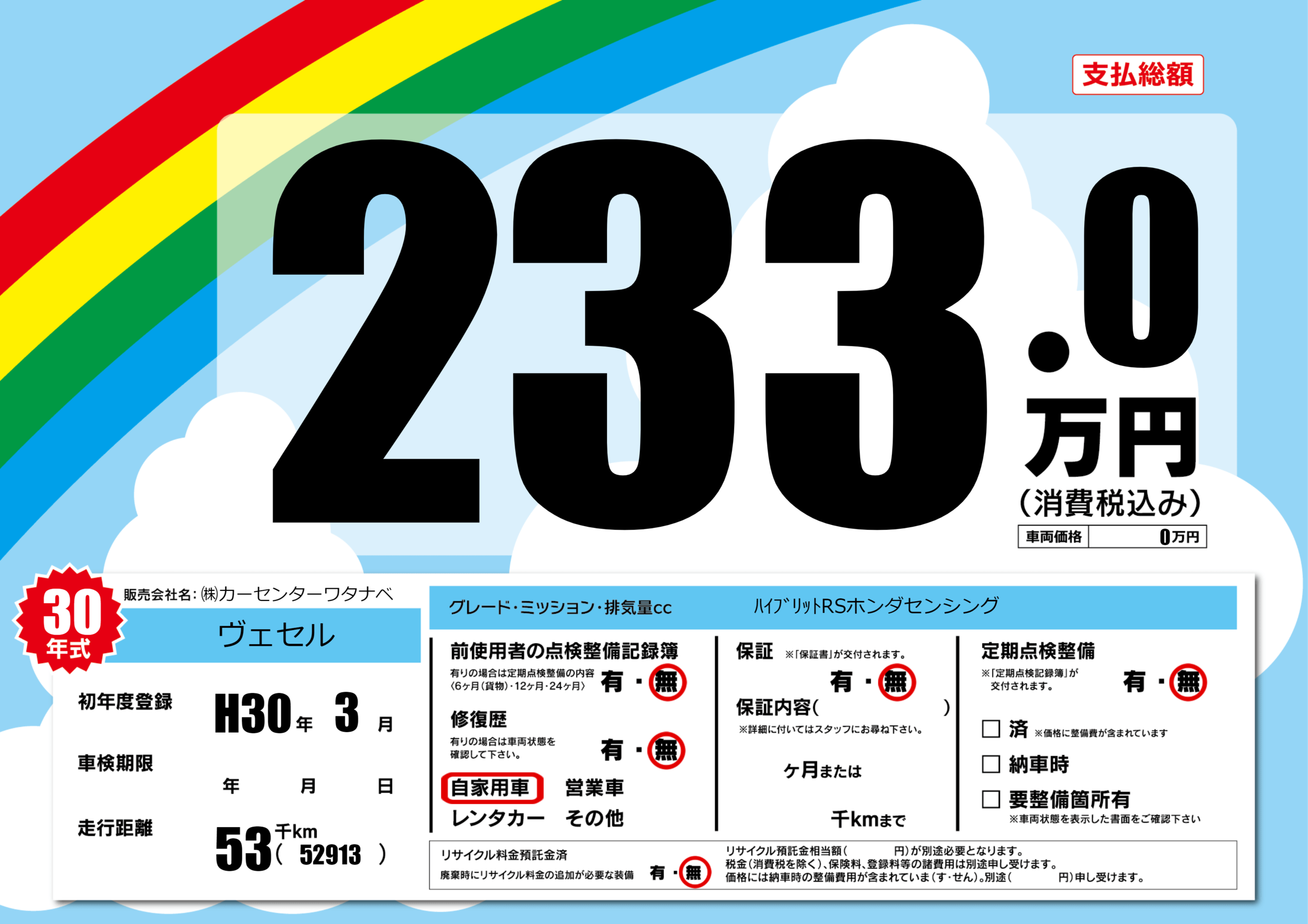 | 車名 | ヴェセル | グレード ミッション 排気量 |