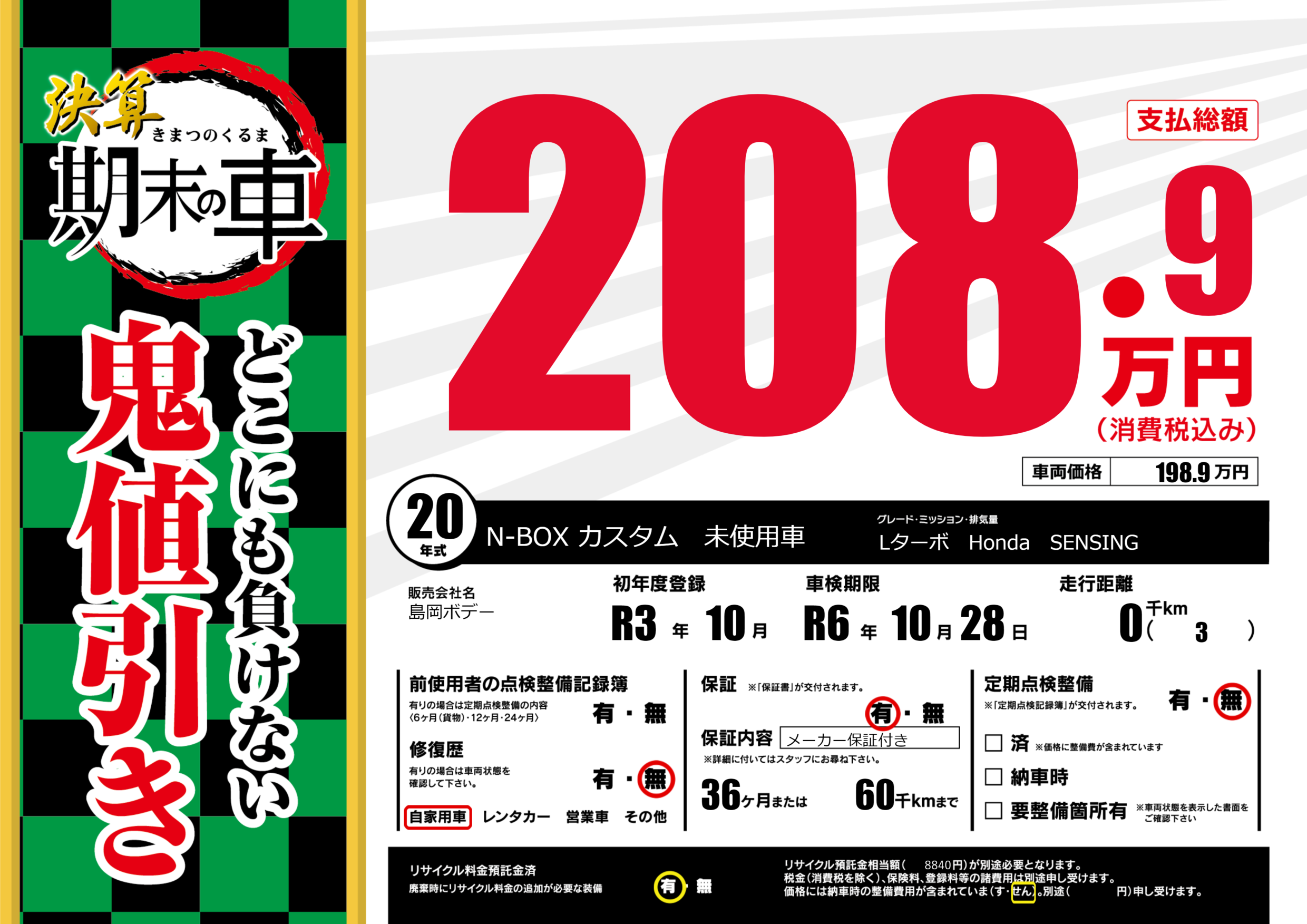 | 車名 | N-BOX カスタム 未使用車 | グレード ミッション 排気量 |