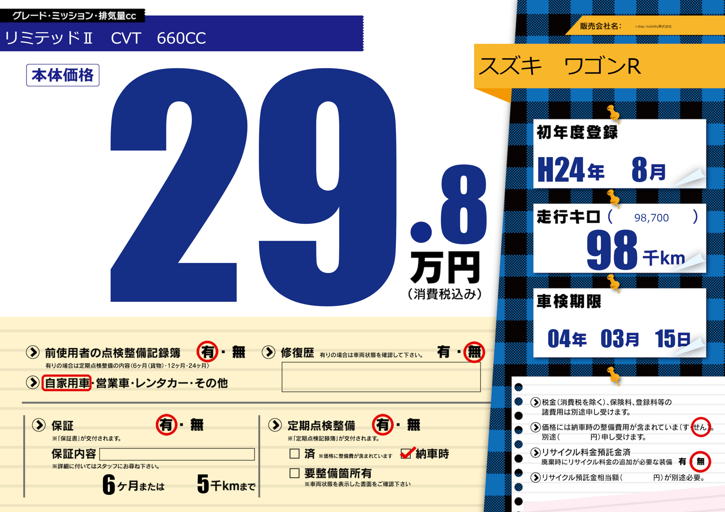 保証付き 保証内容(---) 6ヶ月または(5)千kmまで |