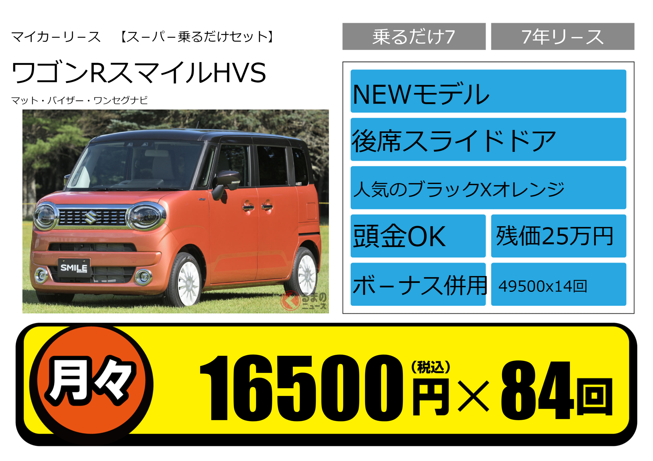 | 車名 | ワゴンRスマイルHVS | グレード ミッション 排気量 |